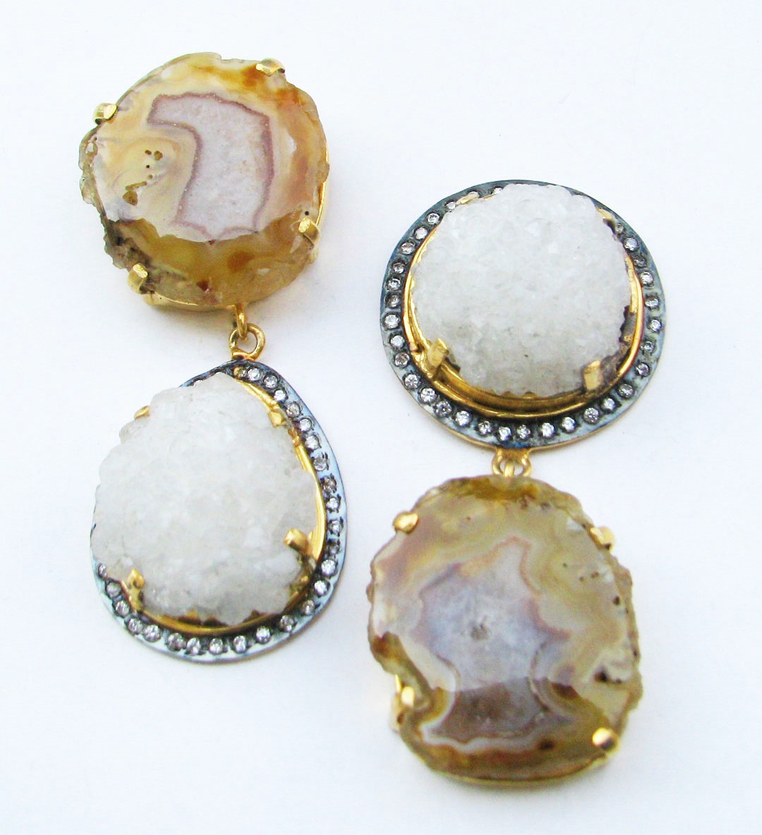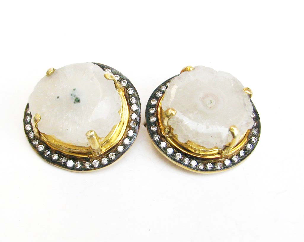 GOD PLATED DRUZY SHELL AGATE EARRING