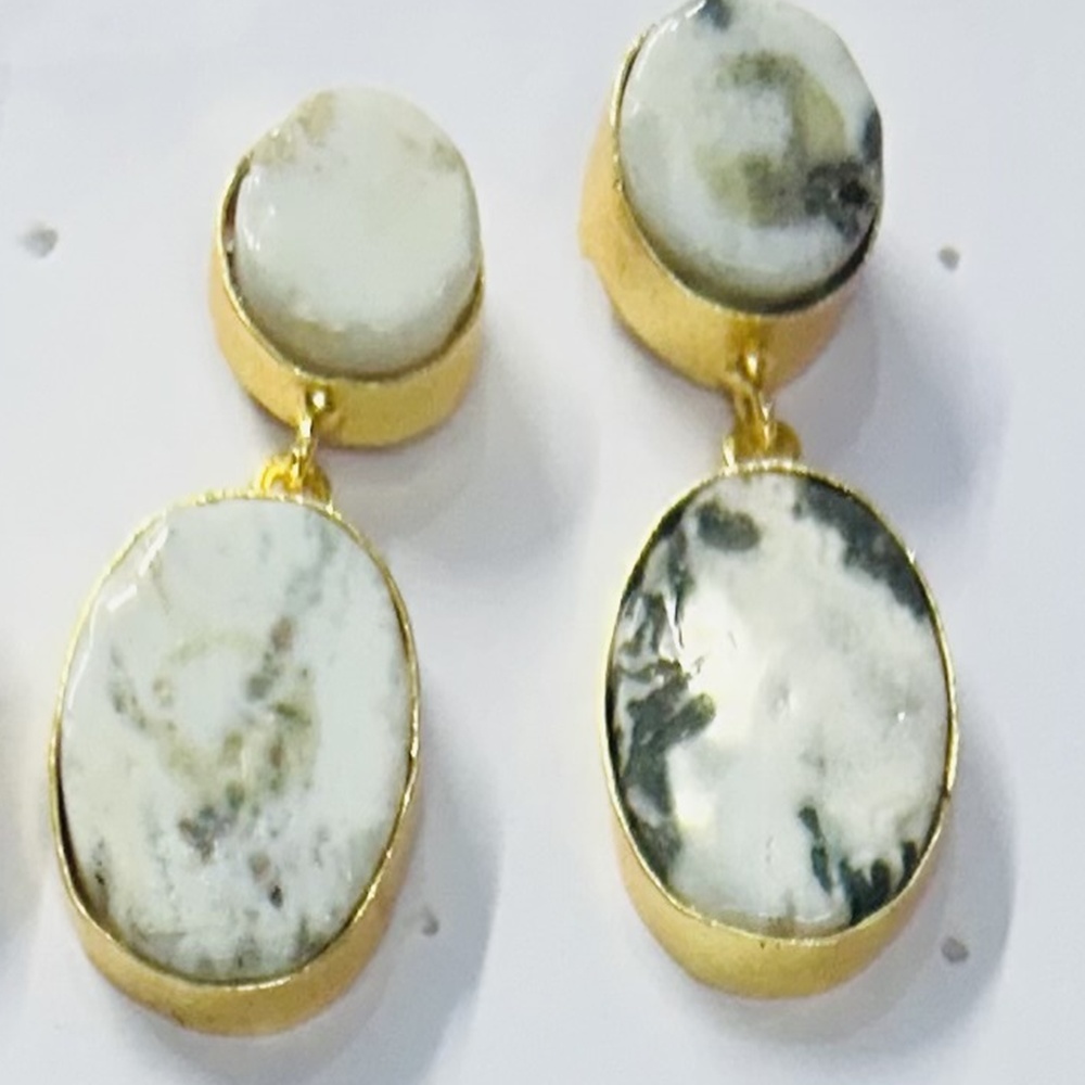 GOLD PLATED DRUZY SHELL AGATE EARRING