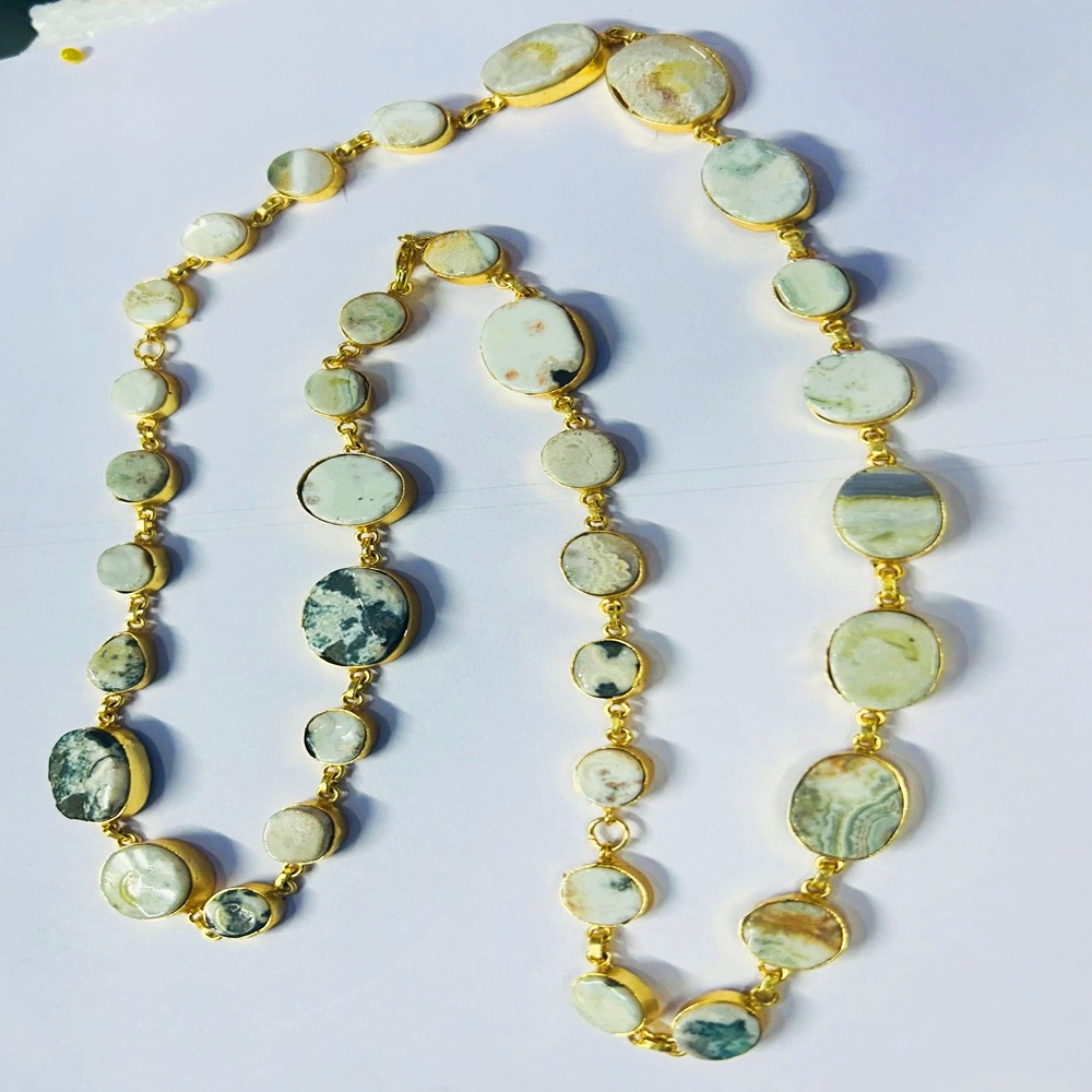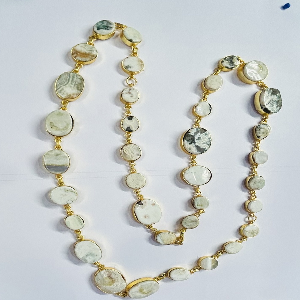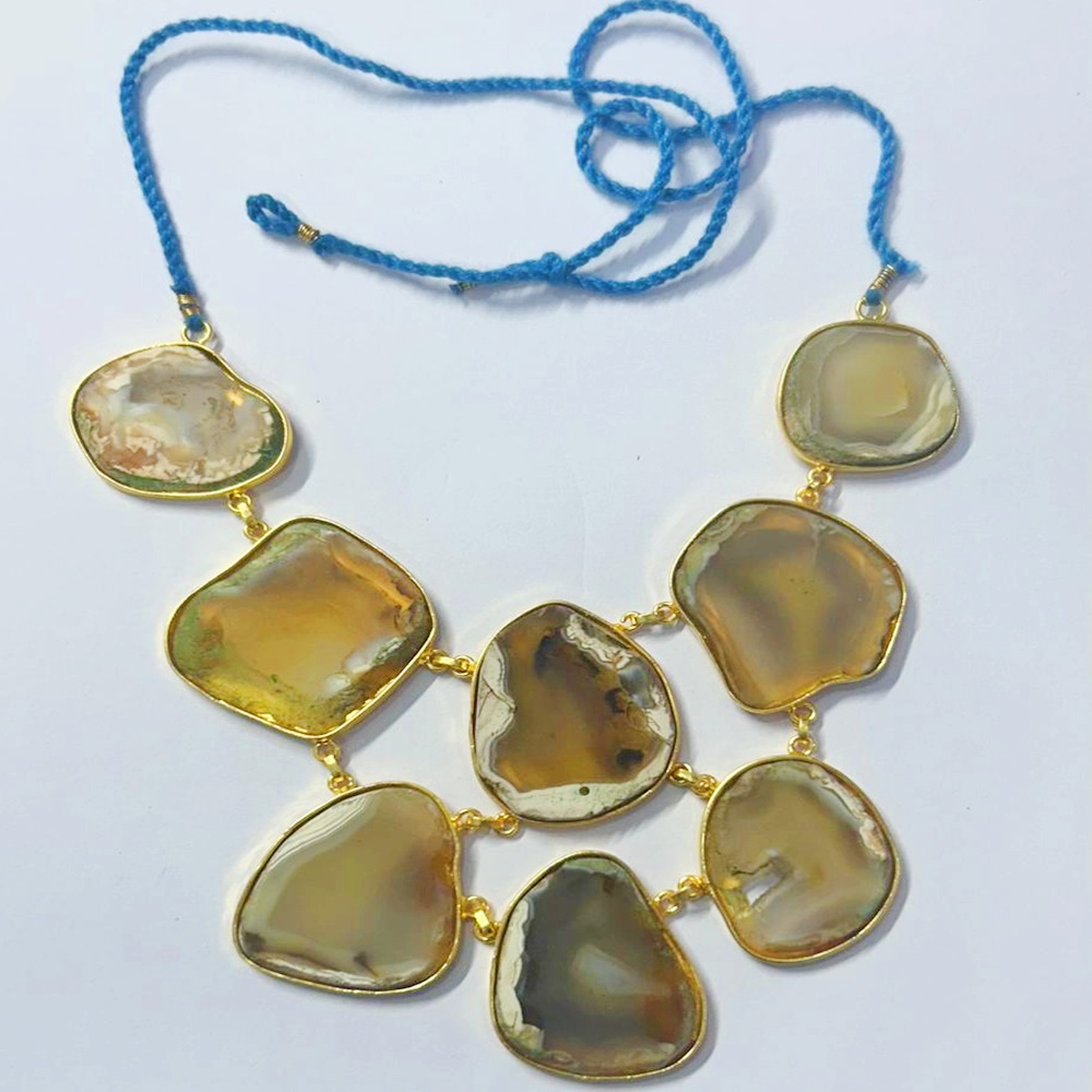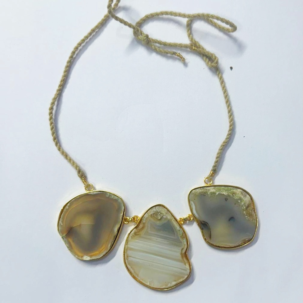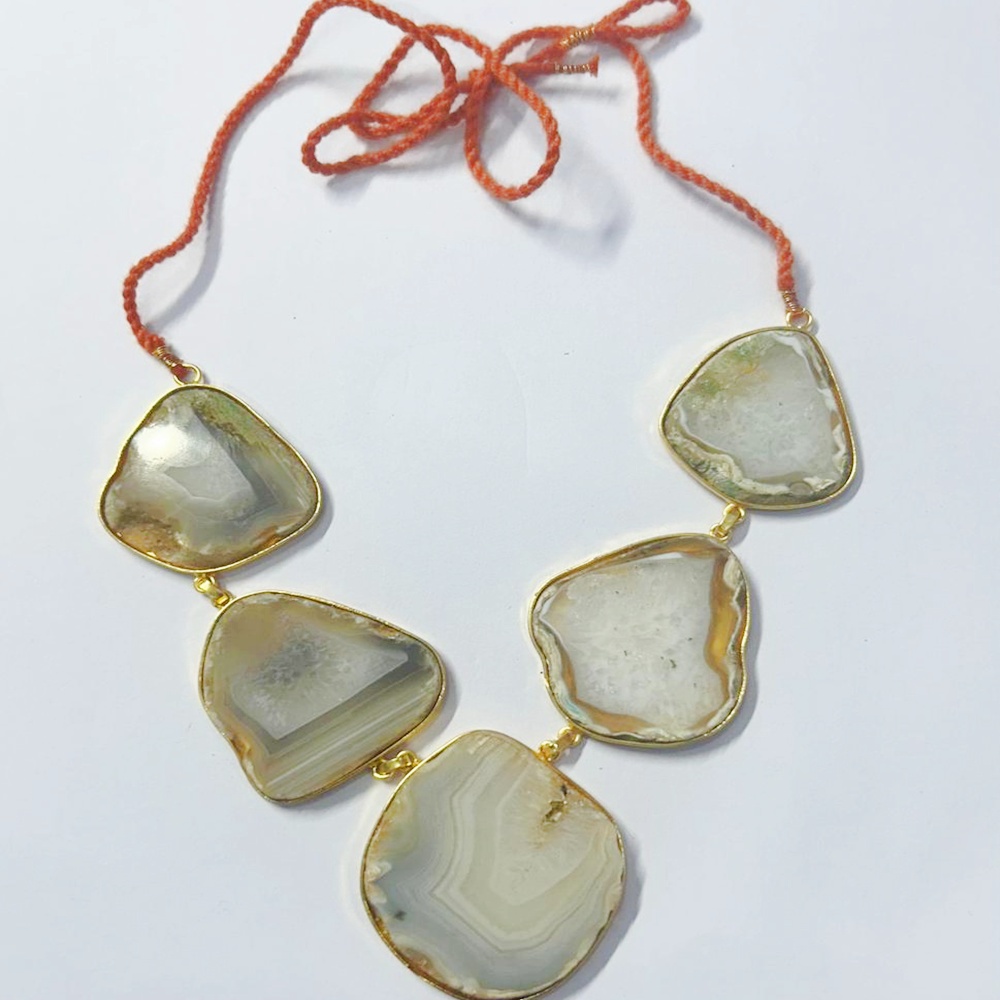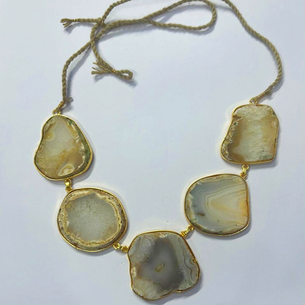 GOLD PLATED NATURAL AGATE SLICES DESIGNER NECKLACE WITH THREAD