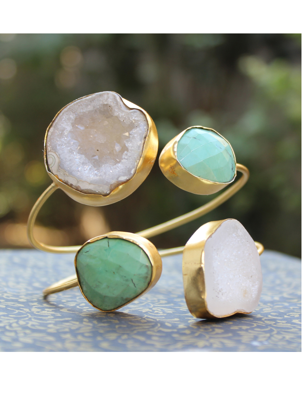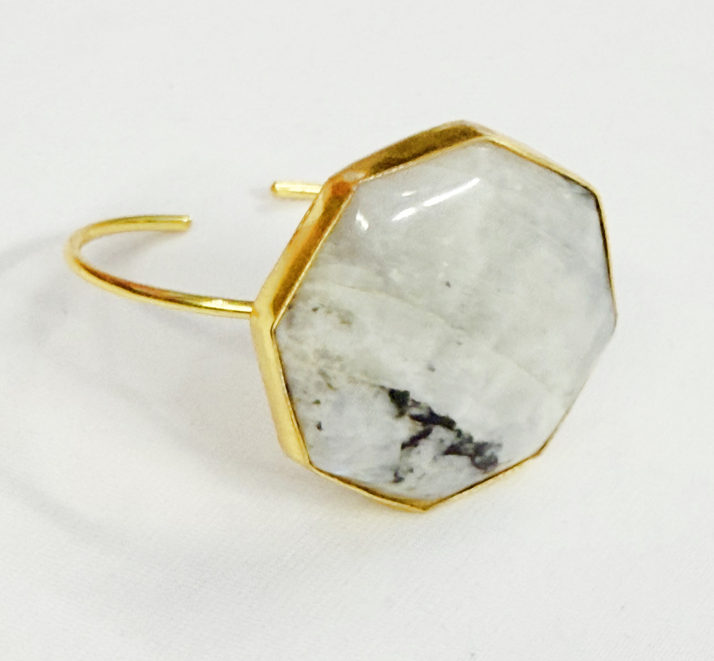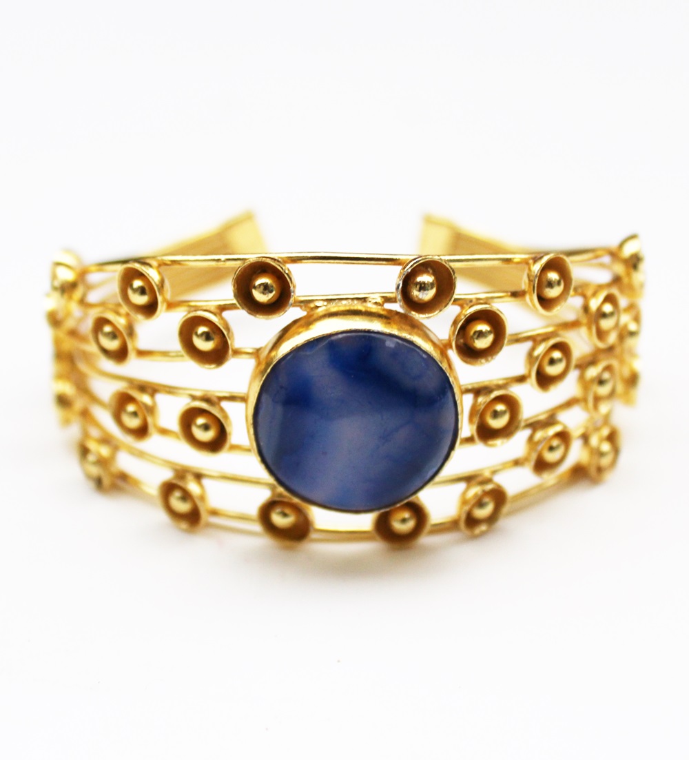NIKEL FREE GOLD PLAETED SEMI PRECIOUS STONE SEATED CUFF/BRACELET