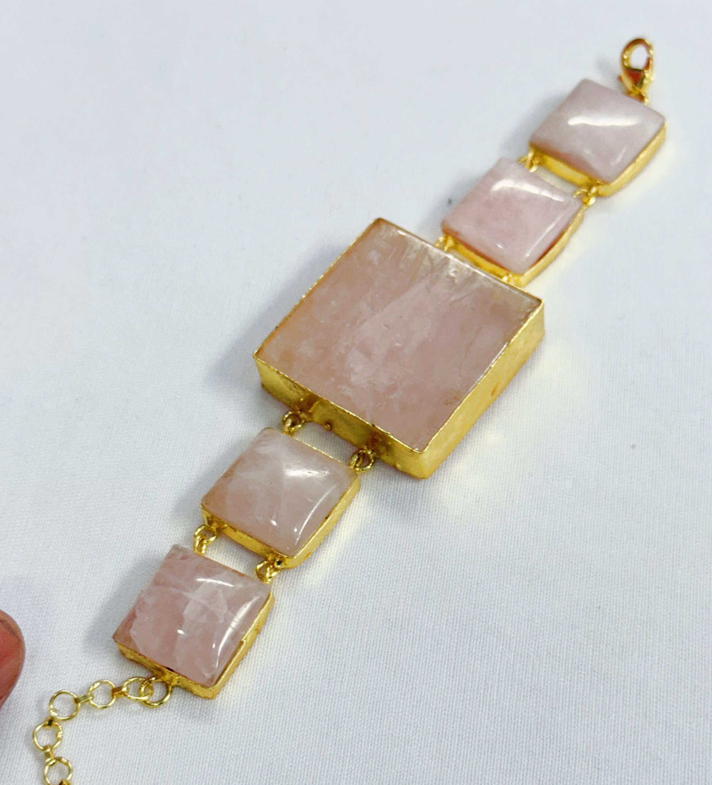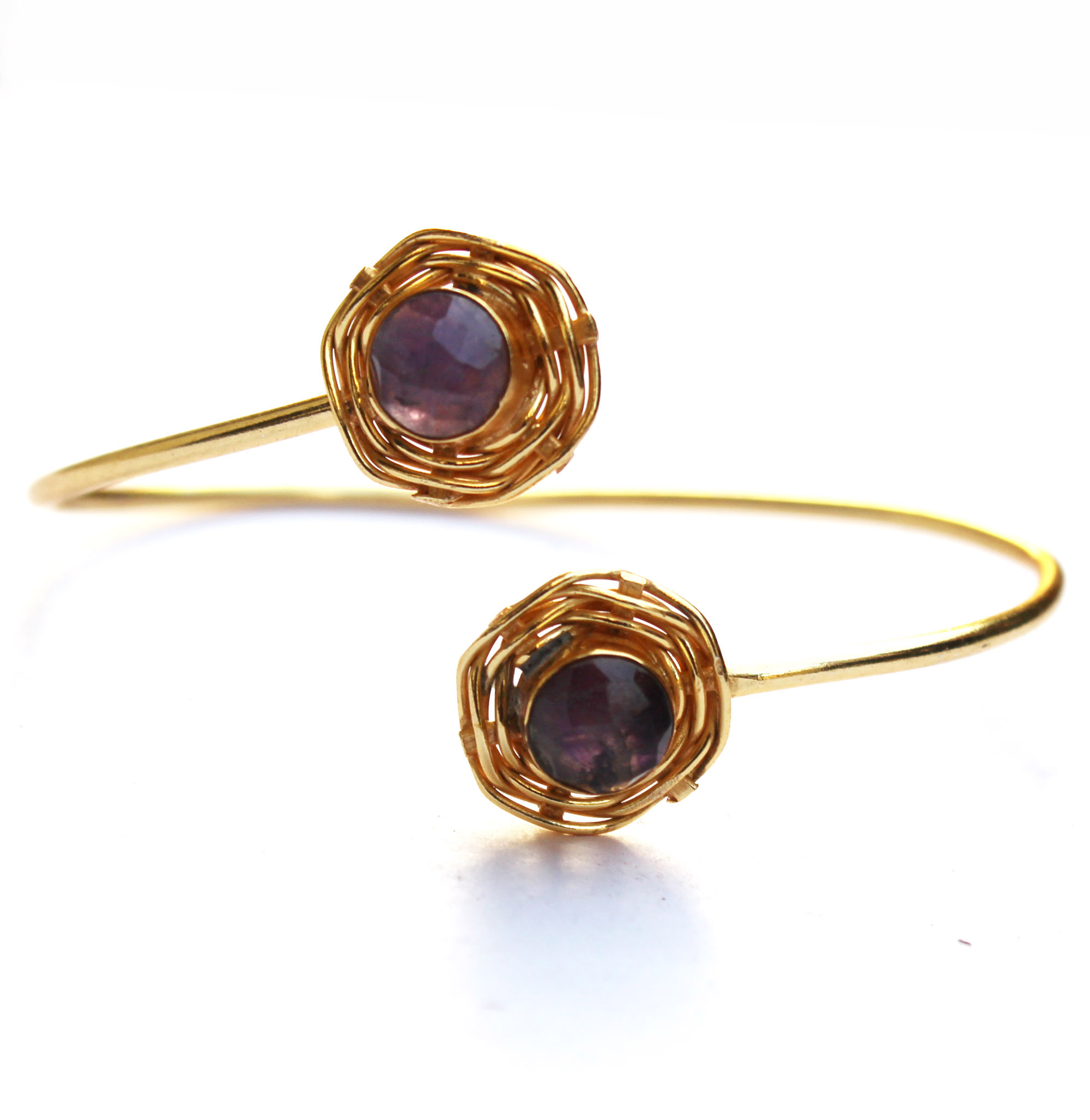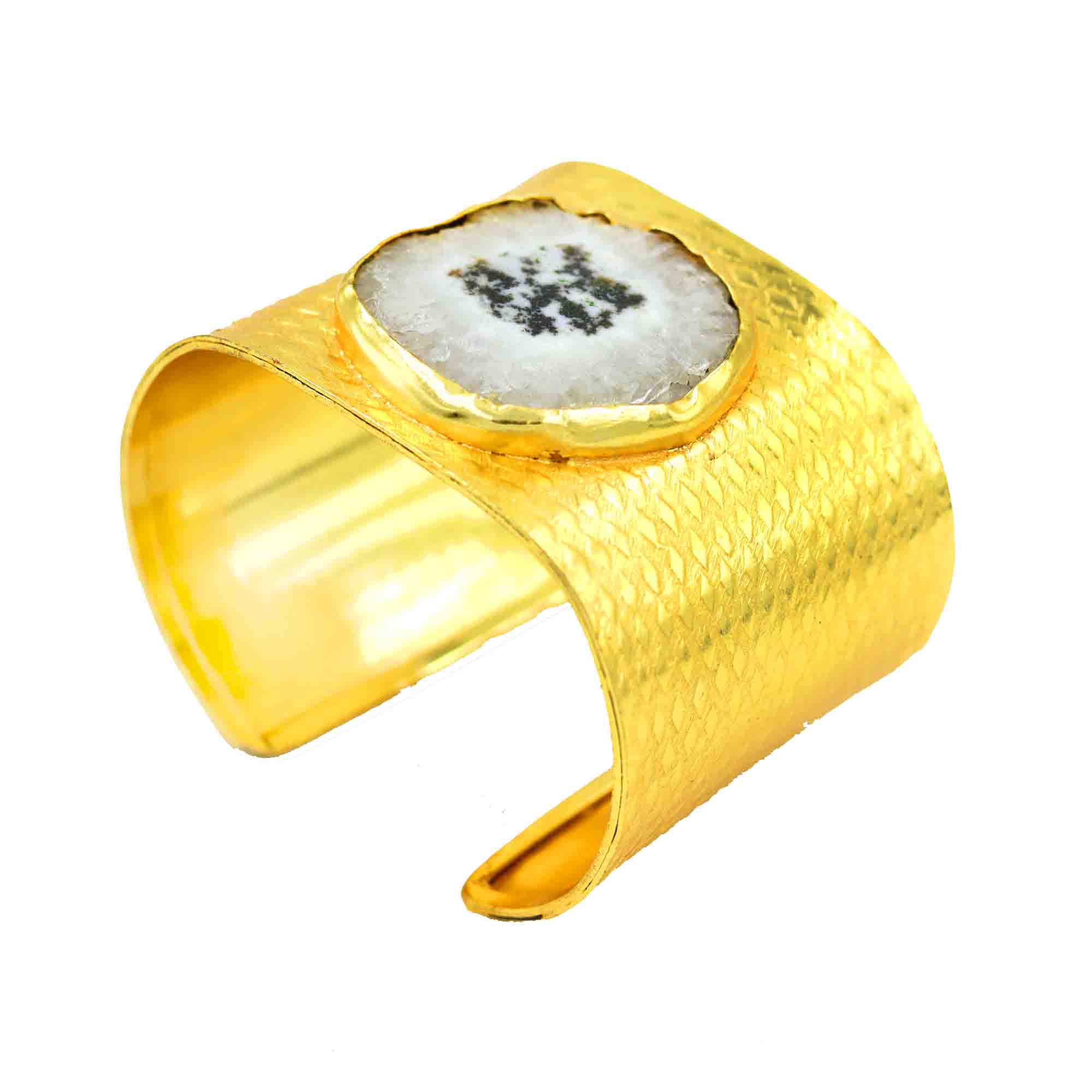 NIKEL FREE GOLD PLAETED SEMI PRECIOUS STONE SEATED CUFF/BRACELET