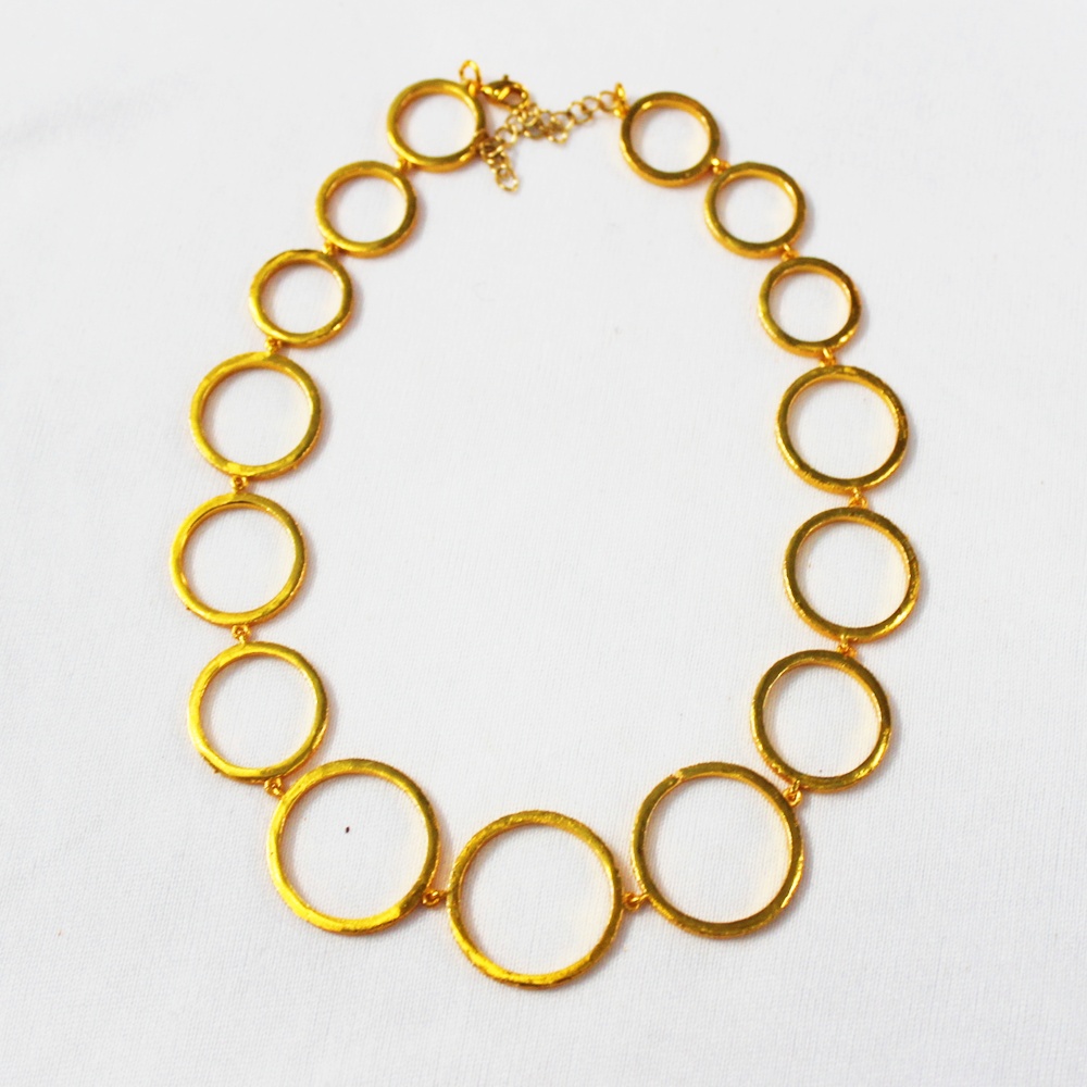 GOLD PLATED BRASS ROUND CERCLE MULTY SIZE DESIGNER NECKLACE WITH OUT SIDE HAMMAER TEXTURE