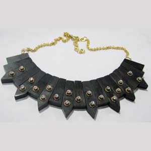 real ebony wood with gold plated gem stone seated pacchi work cuff PENDANT SET