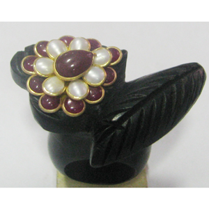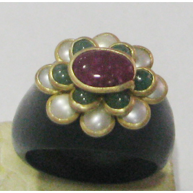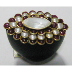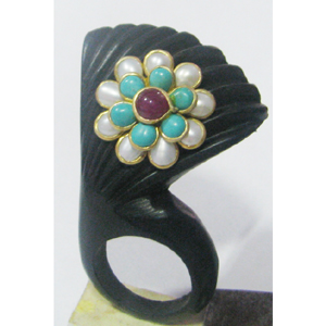 real ebony wood with gold plated gem stone seated pacchi work RINGS