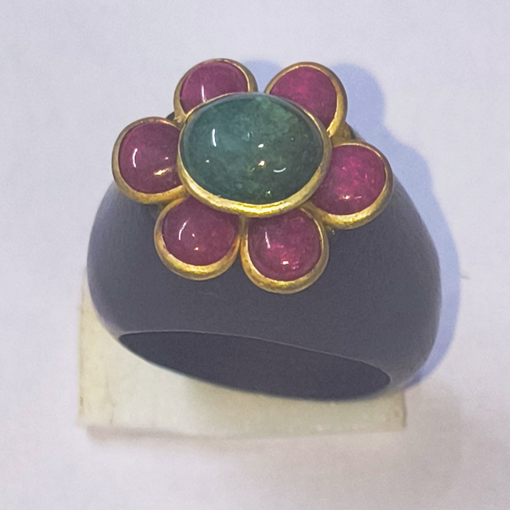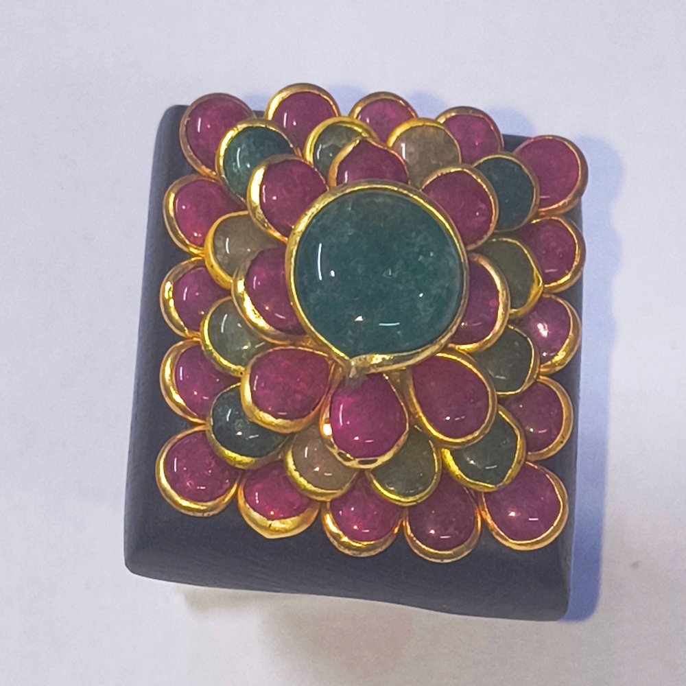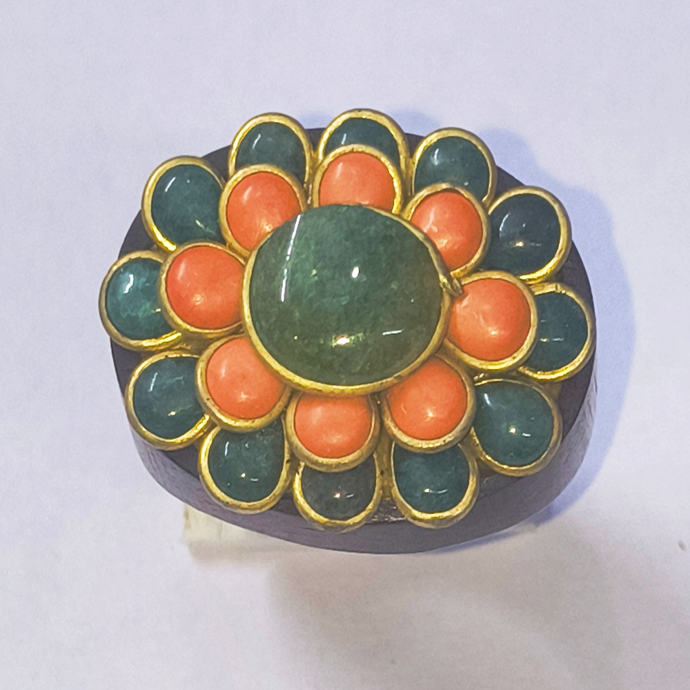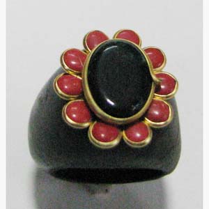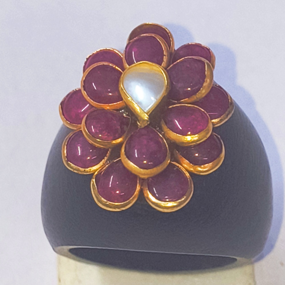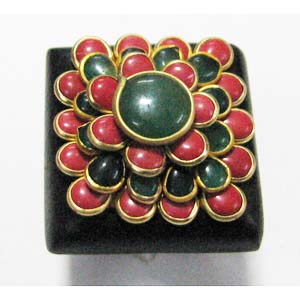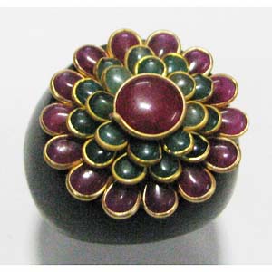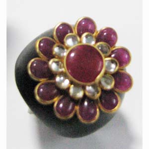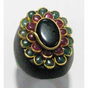 real ebony wood with gold plated gem stone seated pacchi work RINGS