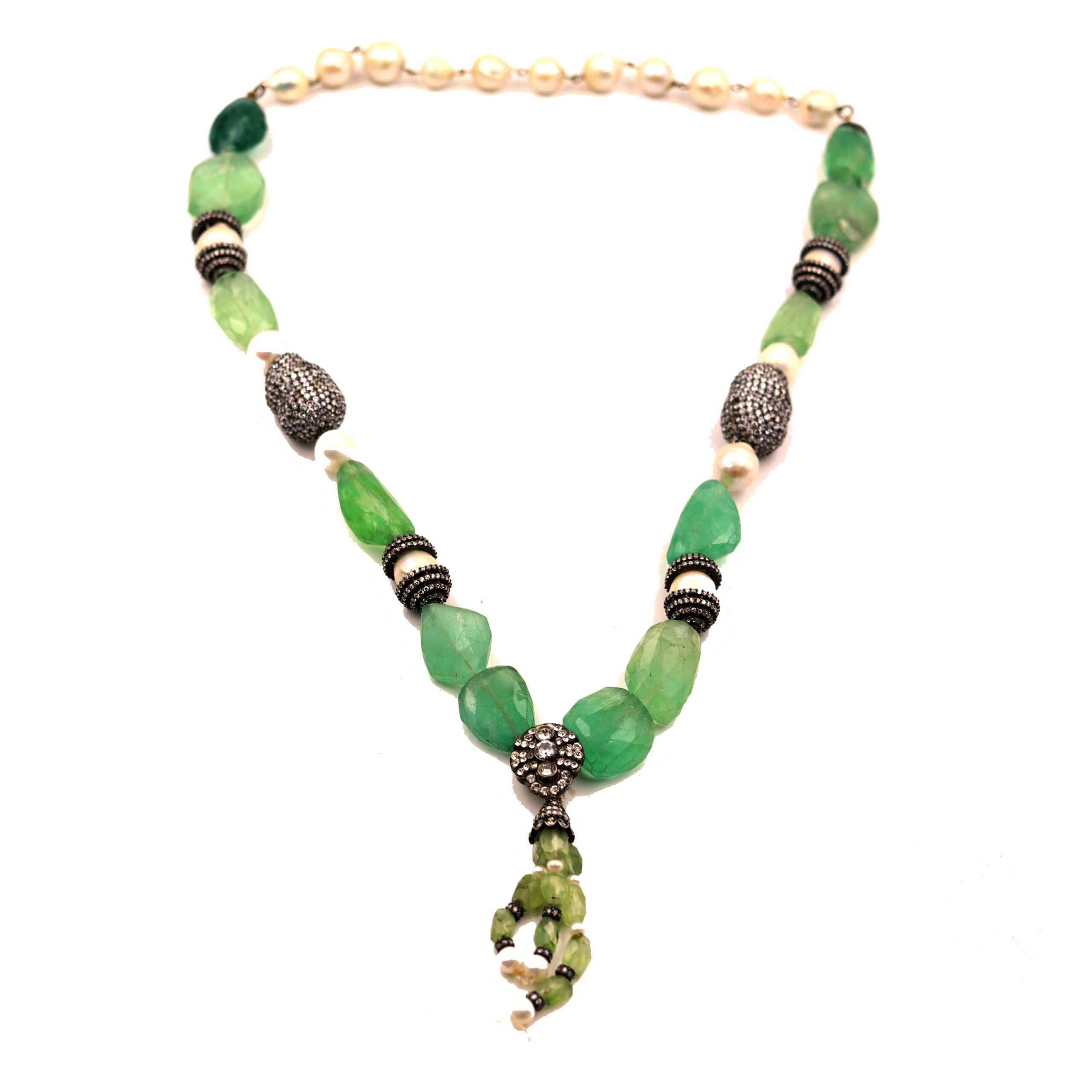 GOLD PLATED FLORITE AND PEARL SETAED NECKLACE