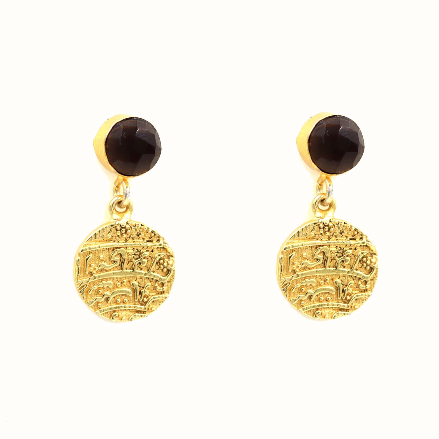 GOLD PLATED ECOATED VINTAGE COIN COPY GEM STONE SEATED EARRING