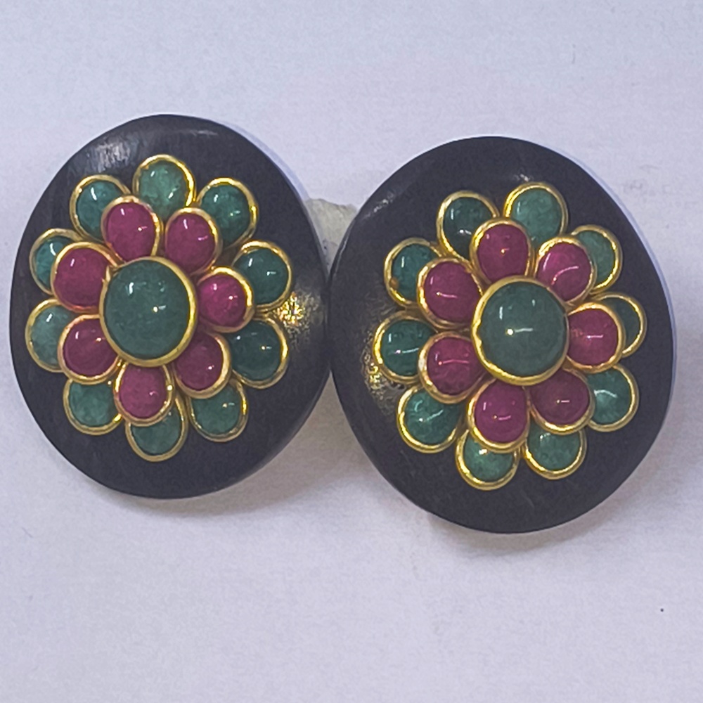 real ebony wood with gold plated gem stone seated pacchi work cuff PENDANT SET