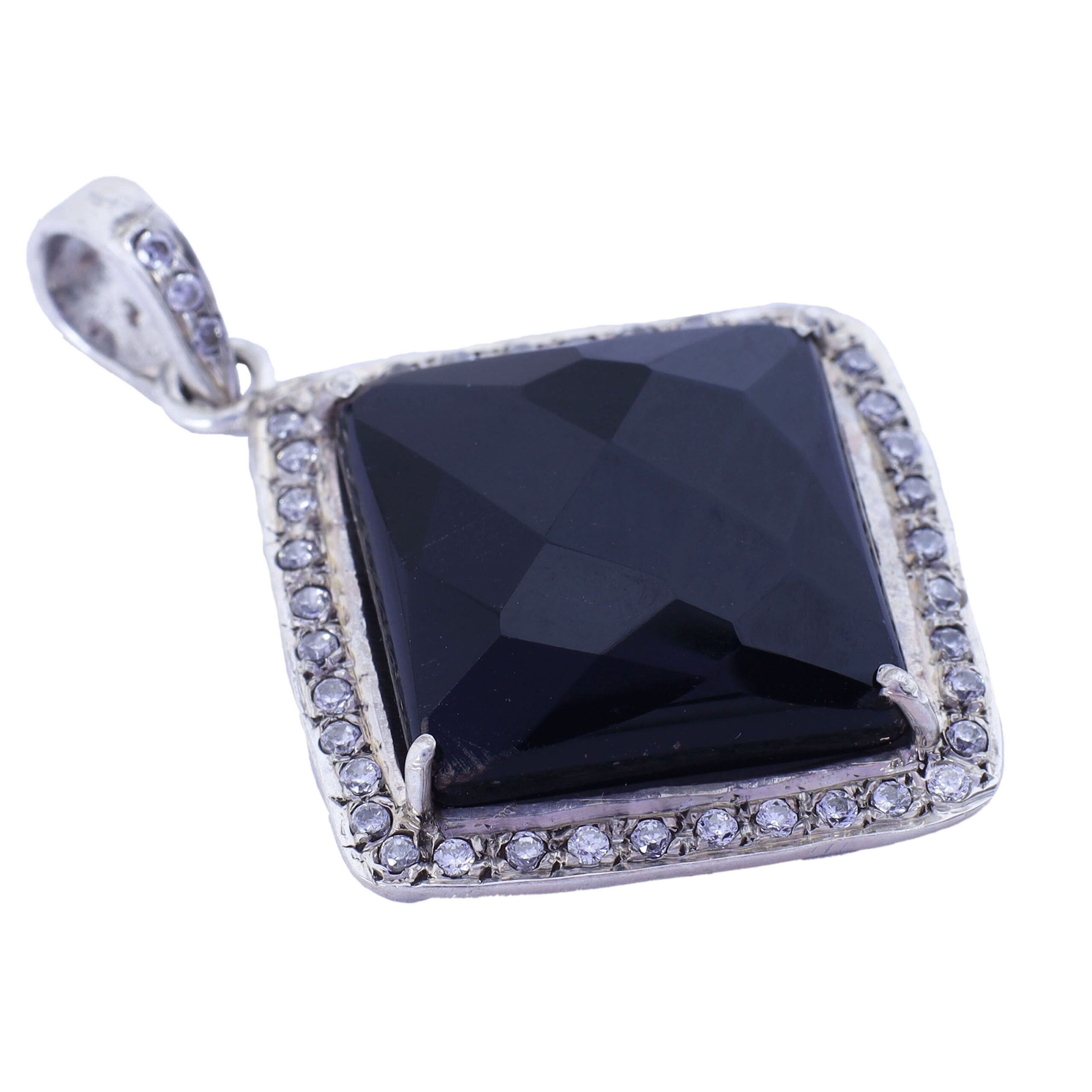 STERLING SILVER BLACK ONYX WITH CZ SEATED HAND MADE DESIGNER PENDANT