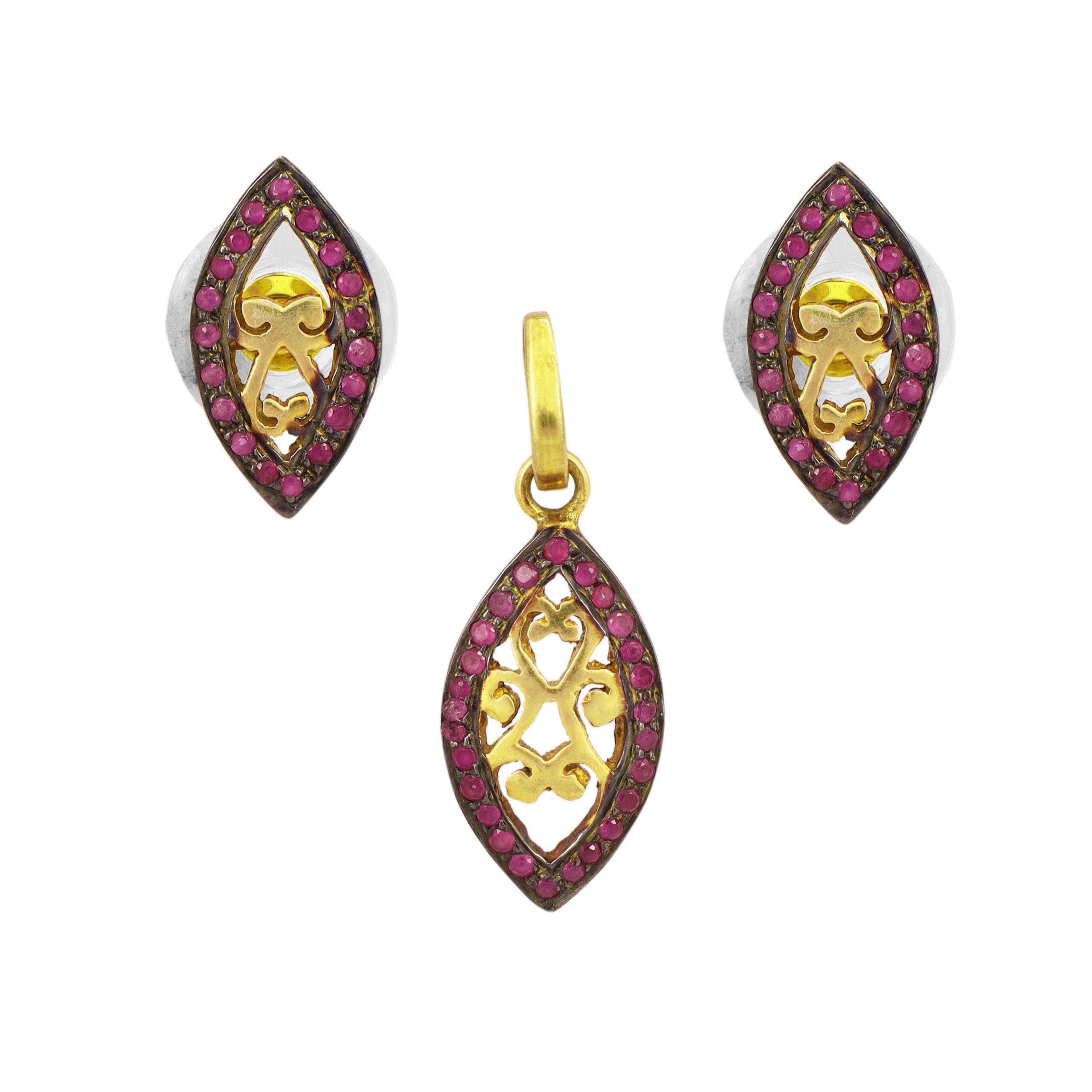 STERLING SILVER TWO TONE PLATING CZ SEATED HAND MADE DESIGNER PENDANT SET