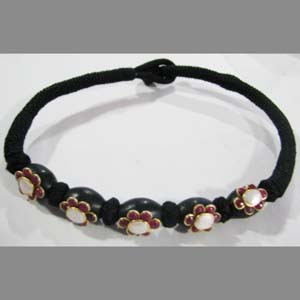 real ebony wood with gold plated gem stone seated pacchi work cuff PENDANT SET