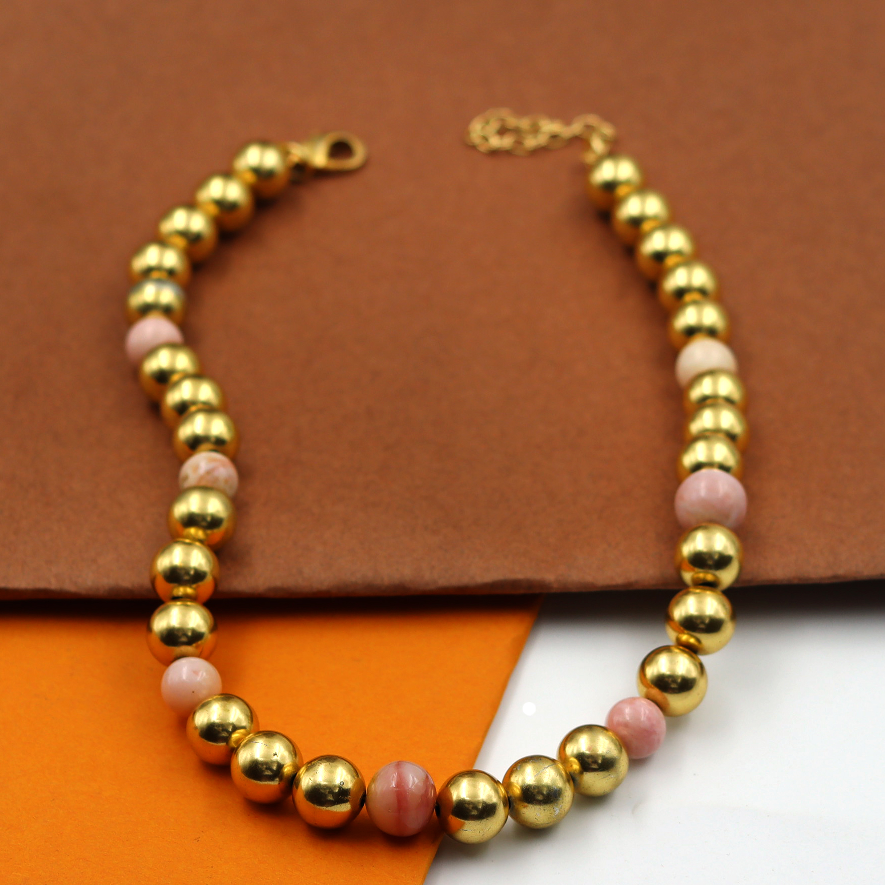 GOLD PLATED PINK OPAL SETAED NECKLACE
