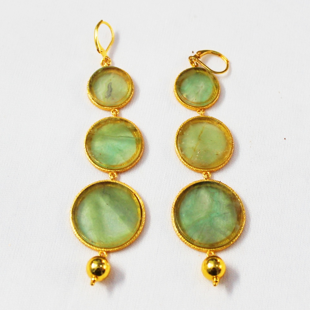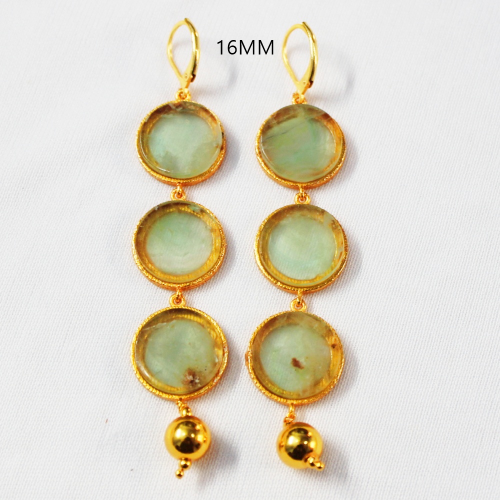 GOLD PLATED ROUND CERCLE MUTY SIZE GREEN FLOURITE STONE SEATED DEIGNER EARRING