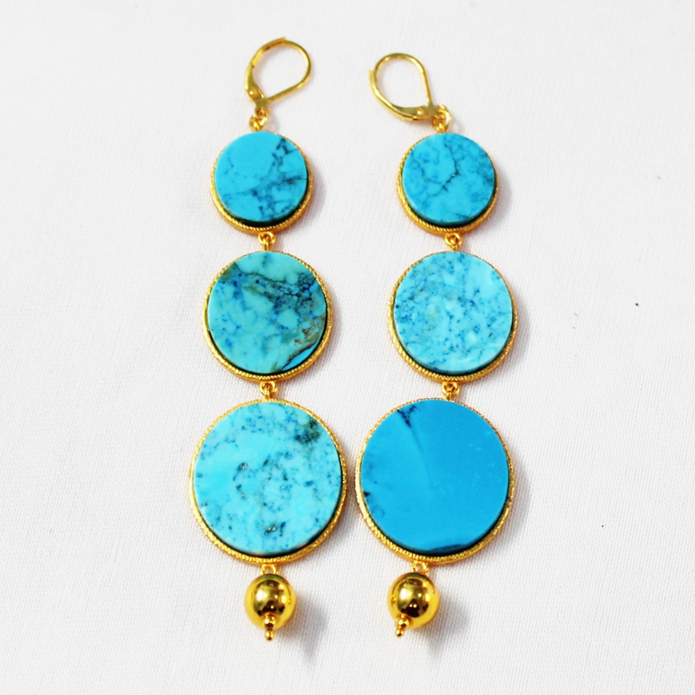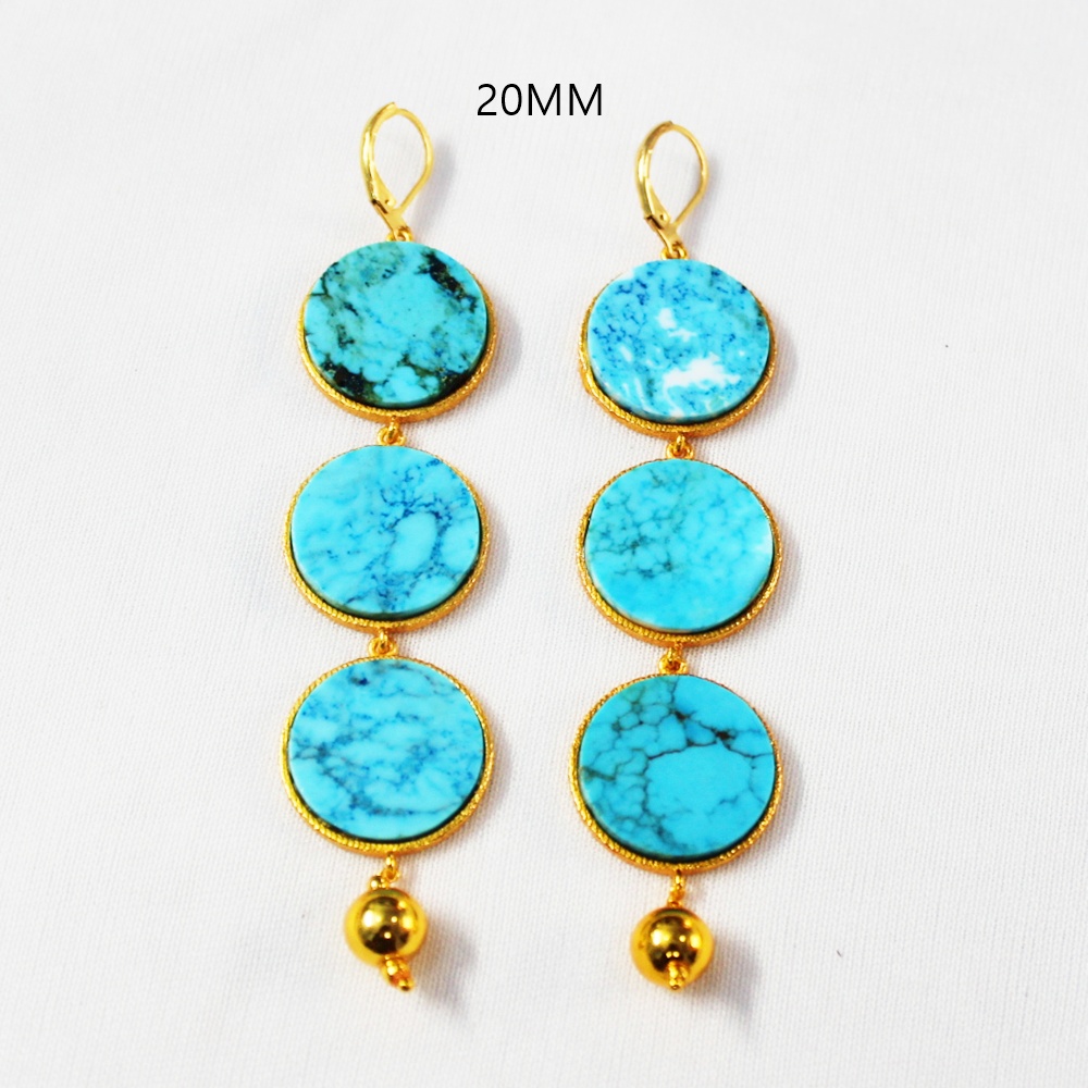GOLD PLATED ROUND CERCLE MUTY SIZE BLUE TERQUISE STONE SEATED DEIGNER EARRING