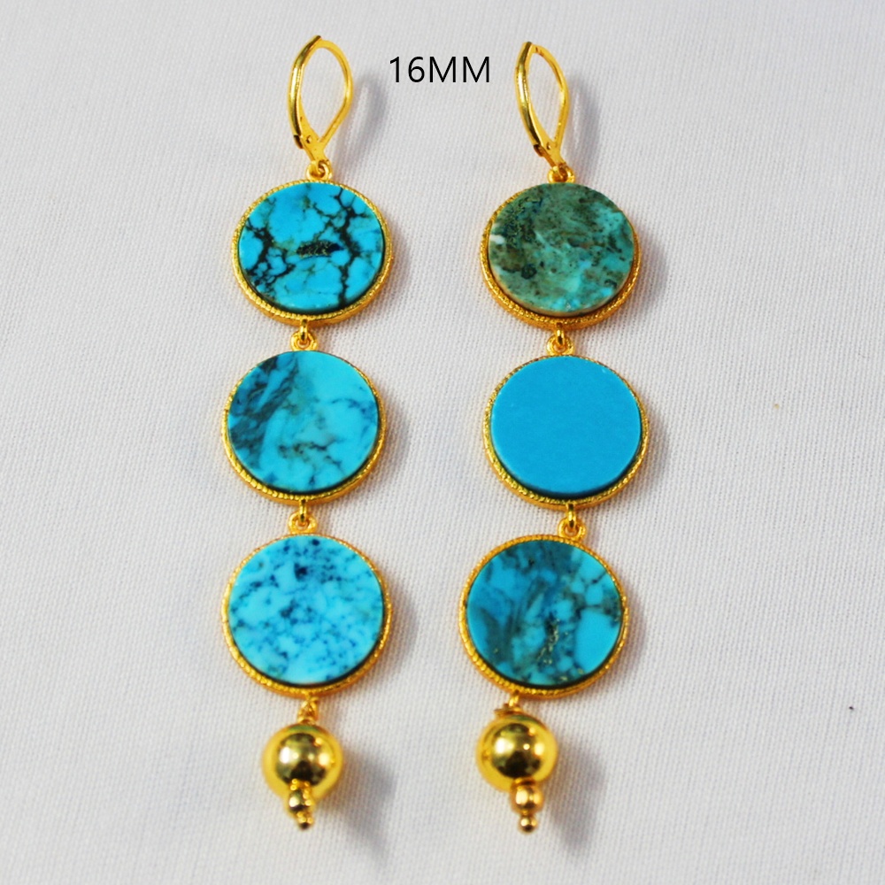 GOLD PLATED ROUND CERCLE 16 MM BLUE TERQUISE STONE SEATED DEIGNER EARRING