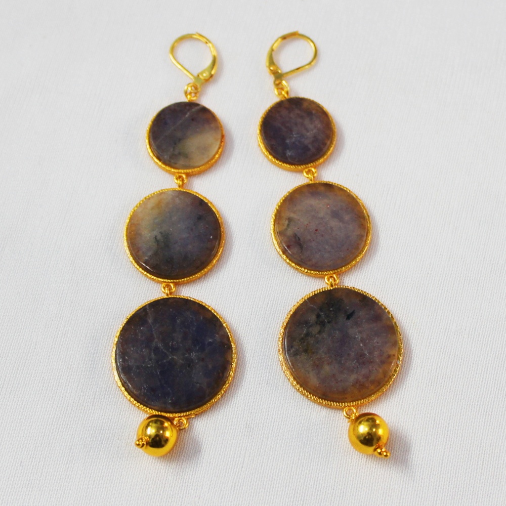 GOLD PLATED ROUND CERCLE MUTY SIZE IOLITE STONE SEATED DEIGNER EARRING