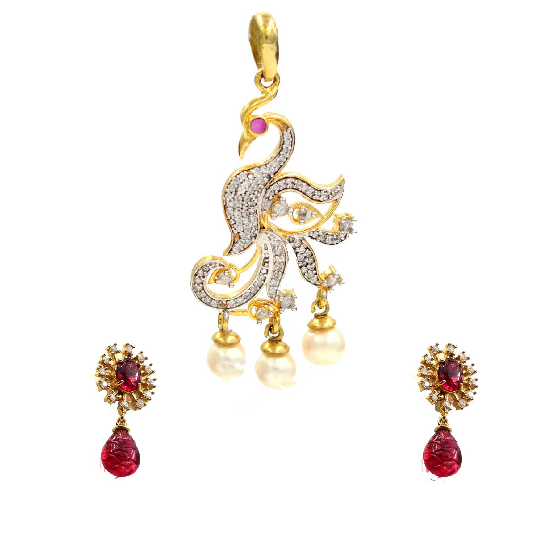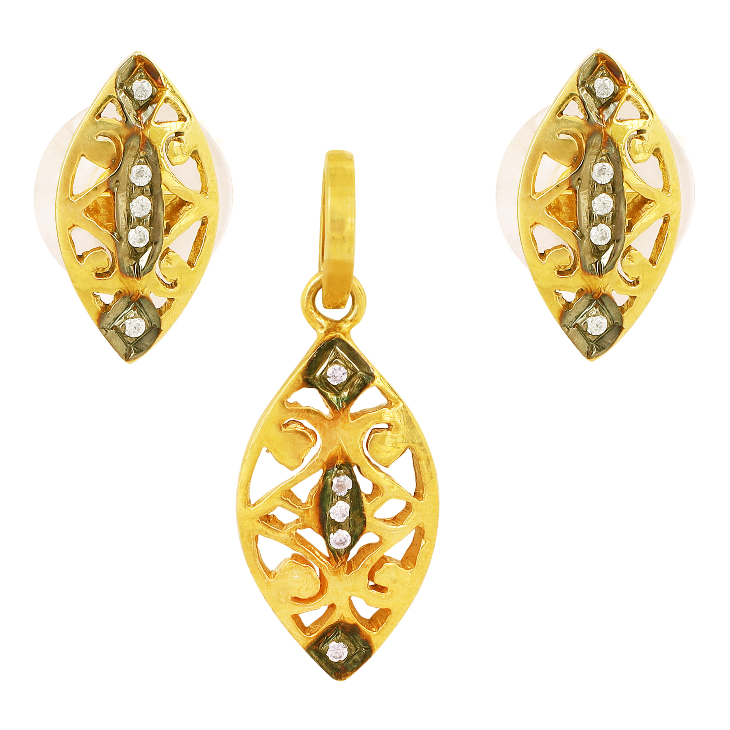 STERLING SILVER TWO TONE PLATING CZ SEATED HAND MADE DESIGNER PENDANT SET