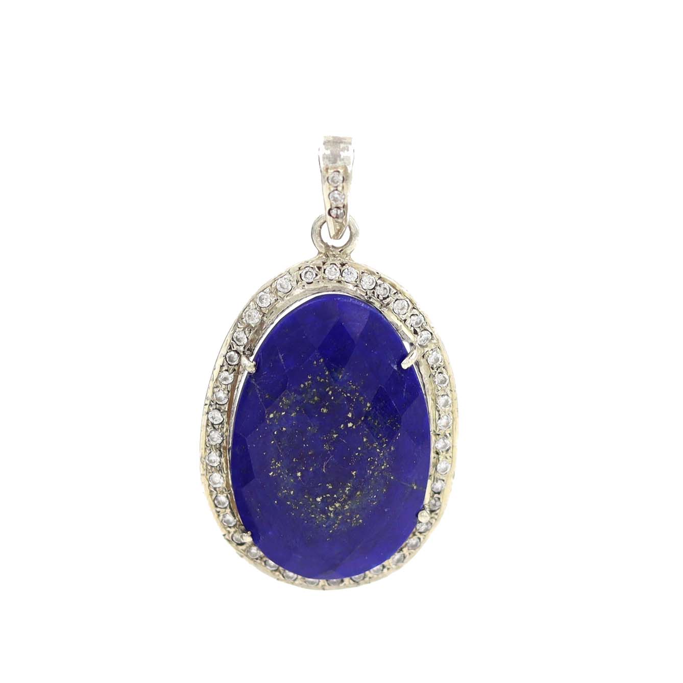 STERLING SILVER LAPIZ WITH C Z SEATED HAND MADE DESIGNER PENDANT