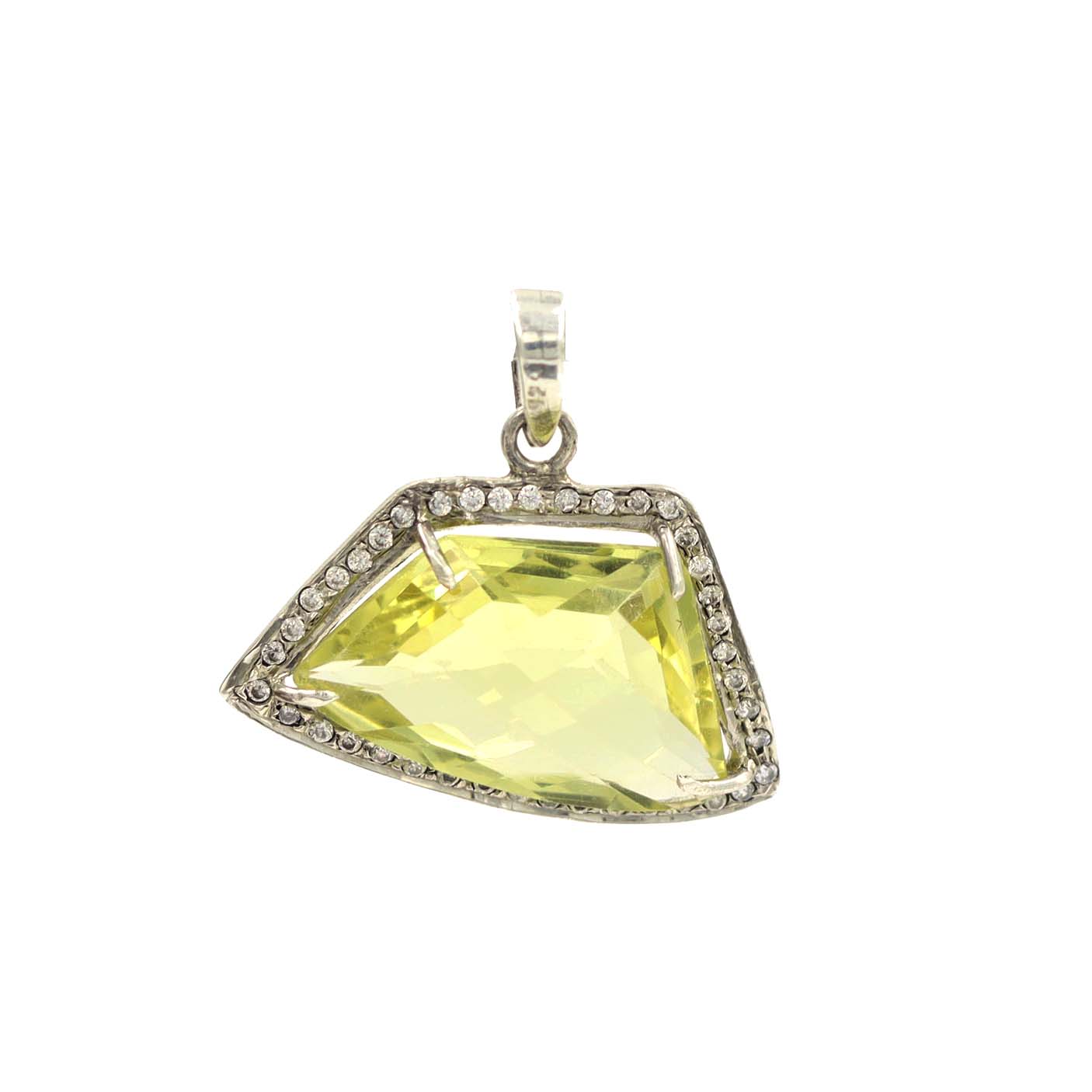 STERLING SILVER LEMON TOPAZ WITH CZ SEATED HAND MADE DESIGNER PENDANT