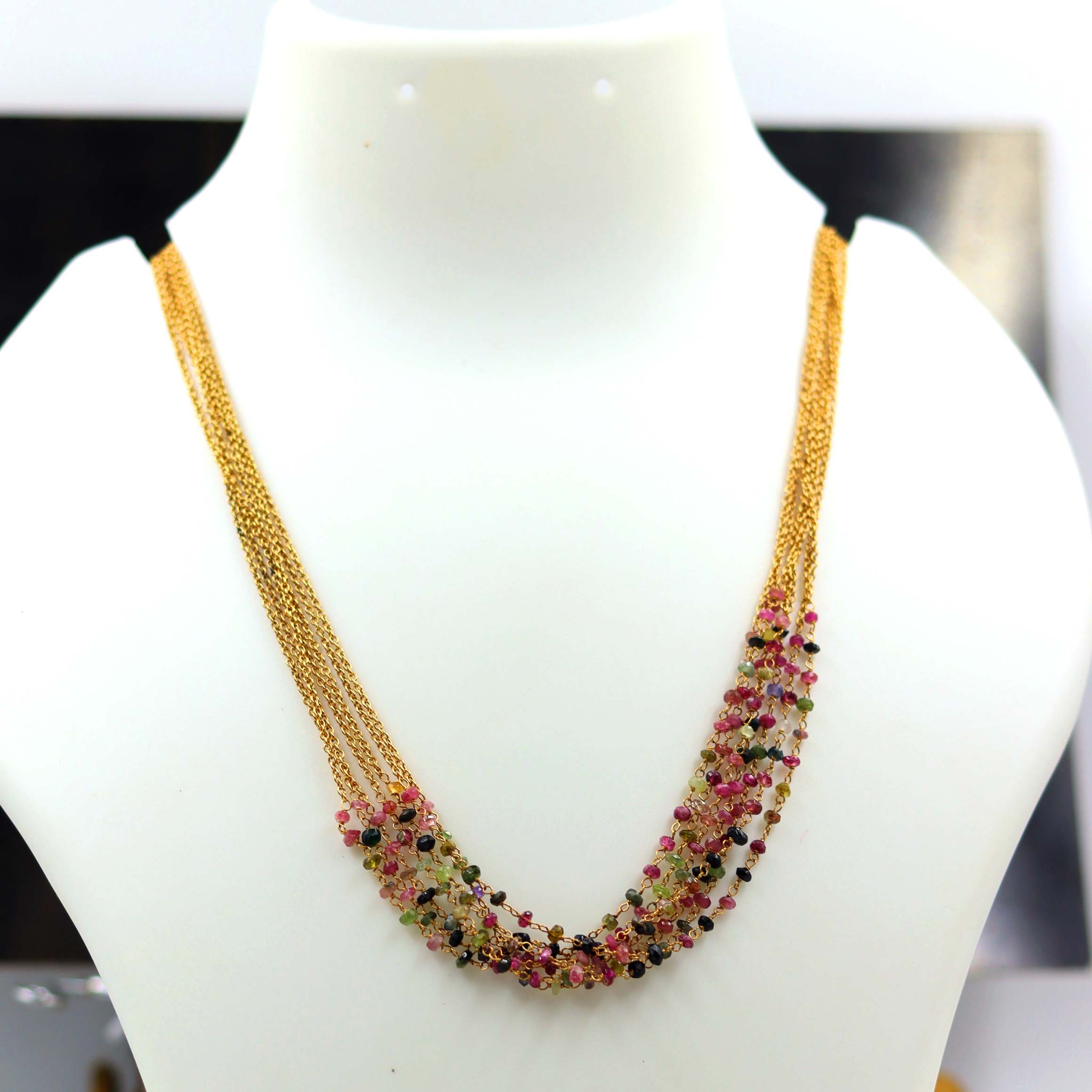 STERLING SILVER GOLD PLATED MULTY COLOR SEMI PRECIOUS STONE SBEADS SEATED HAND MADE DESIGNER NECKLACE