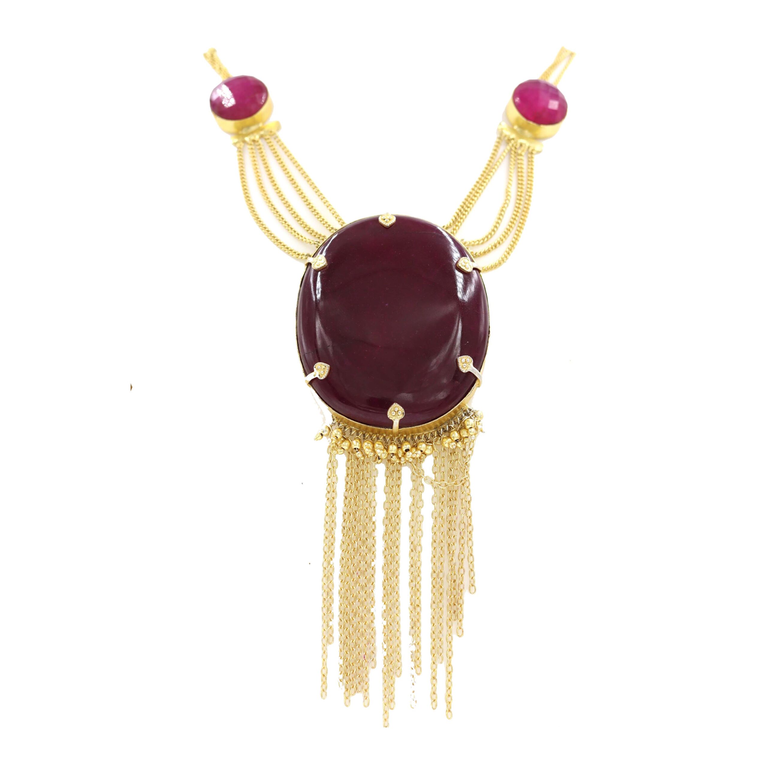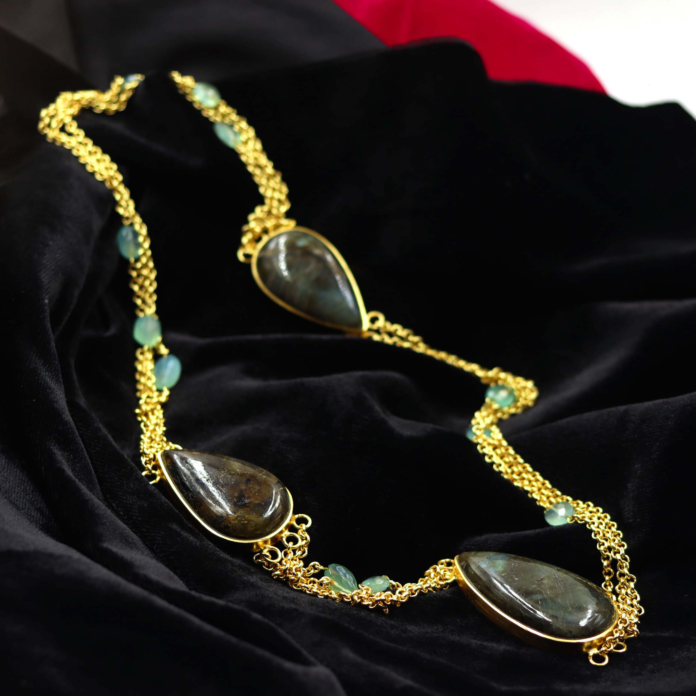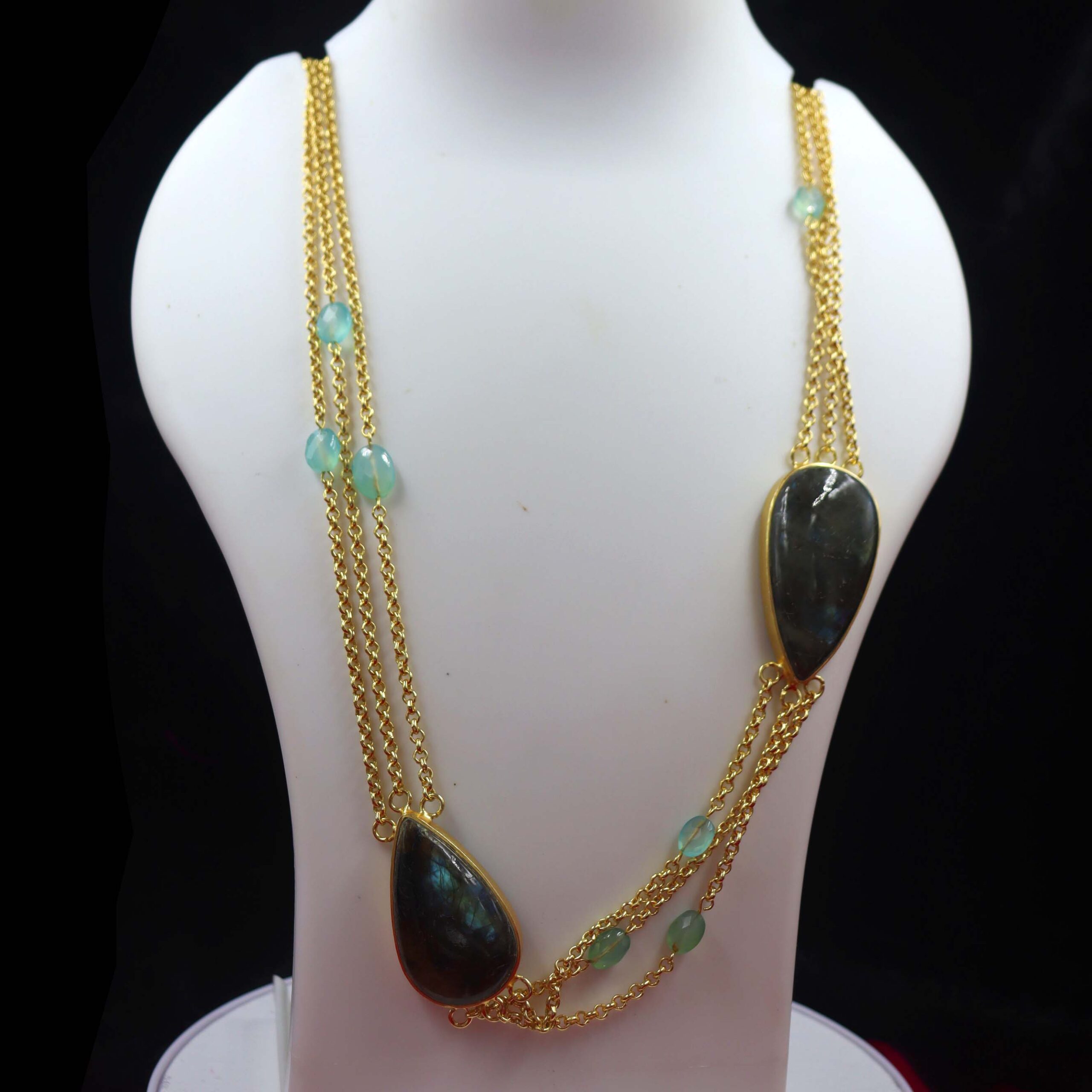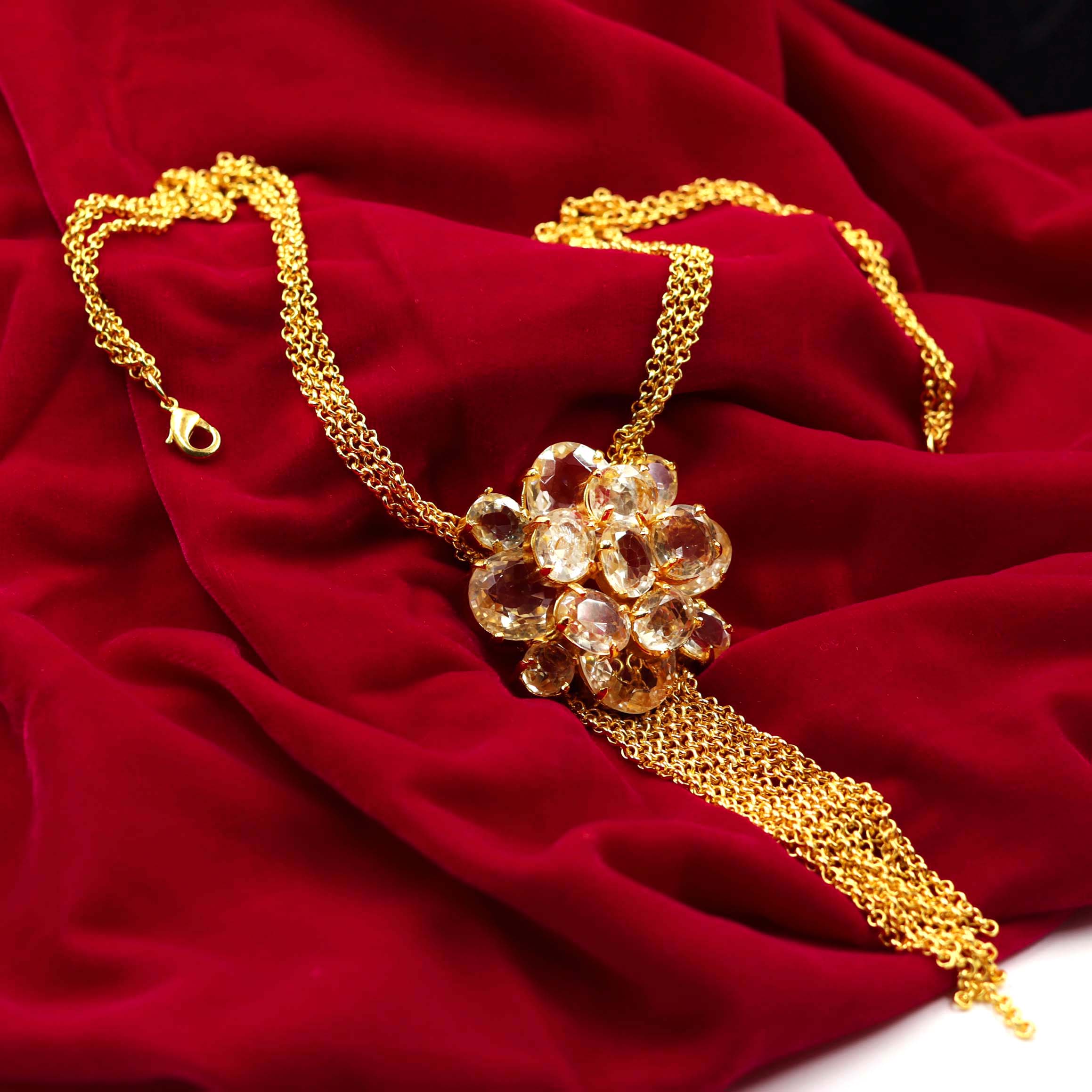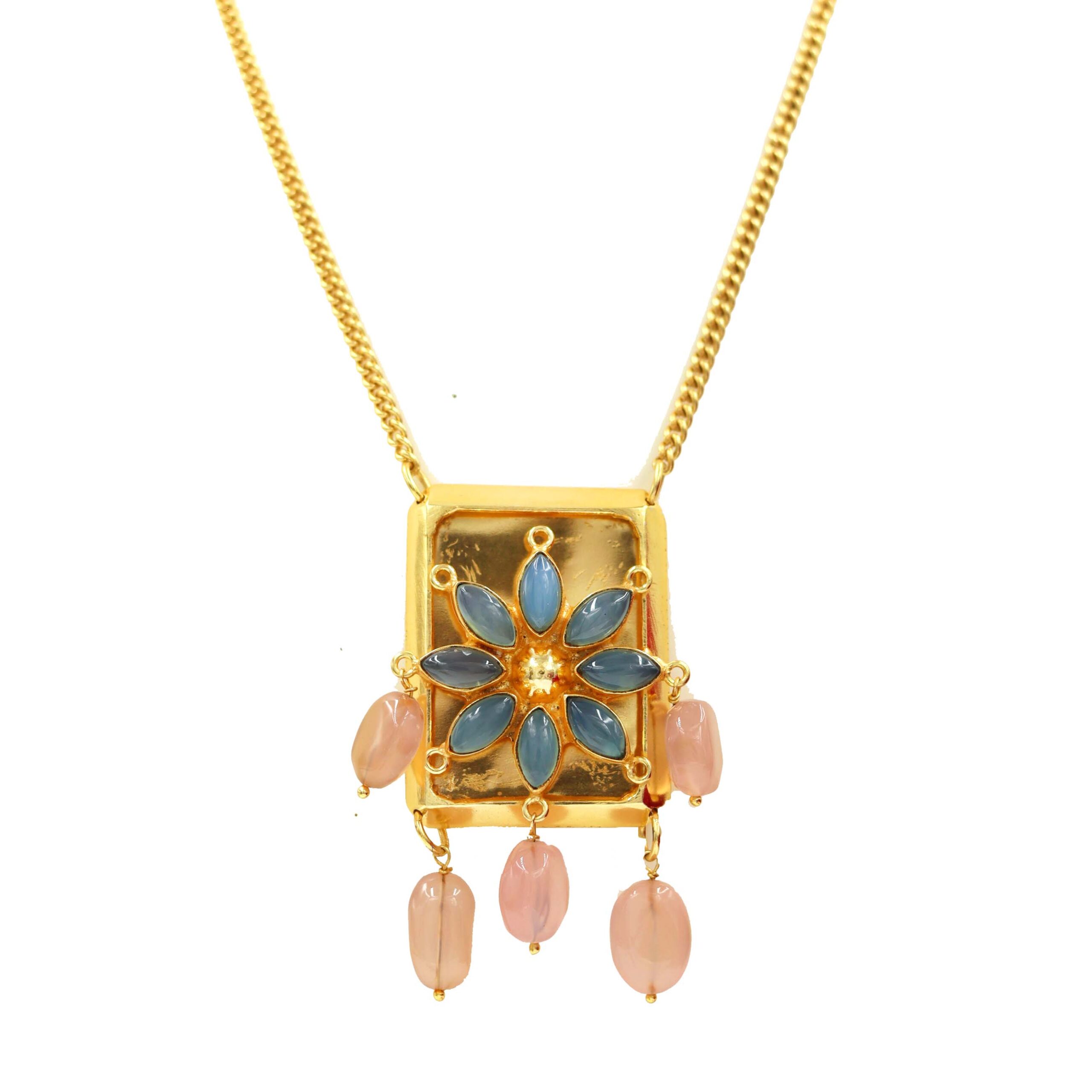 NIKEL FREE BRASS EACOATED WITH GEM STONE SEATED DESIGNER NECKLACE