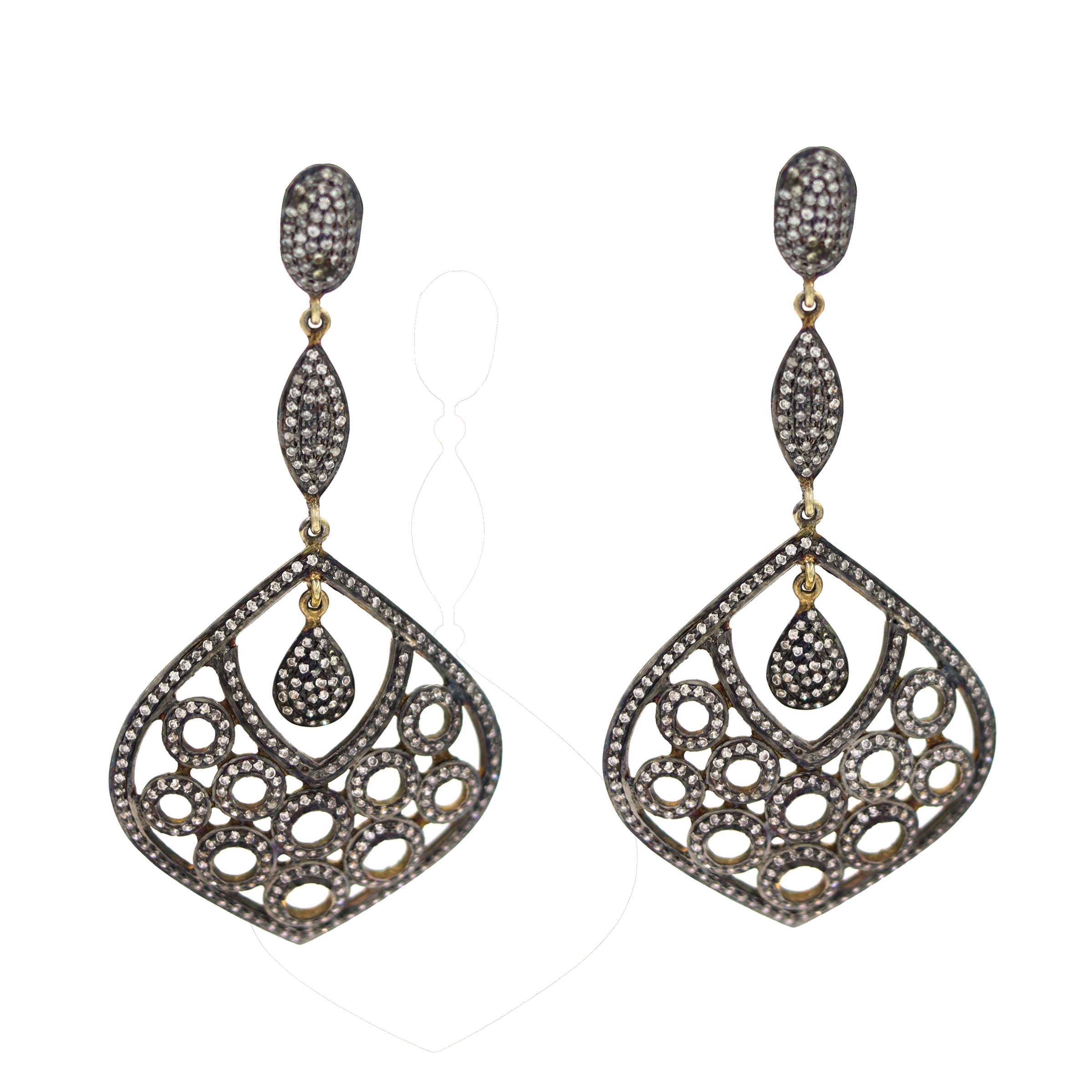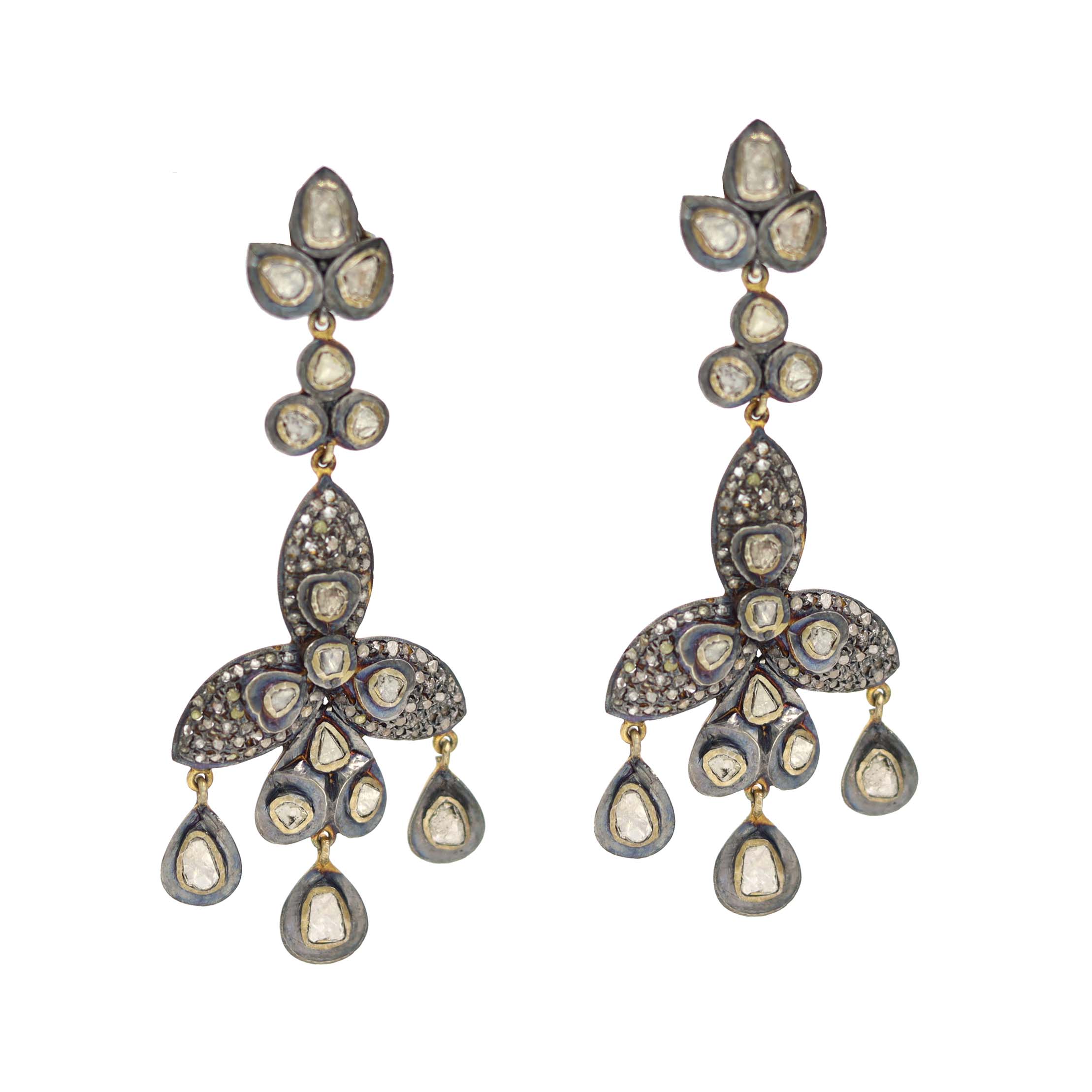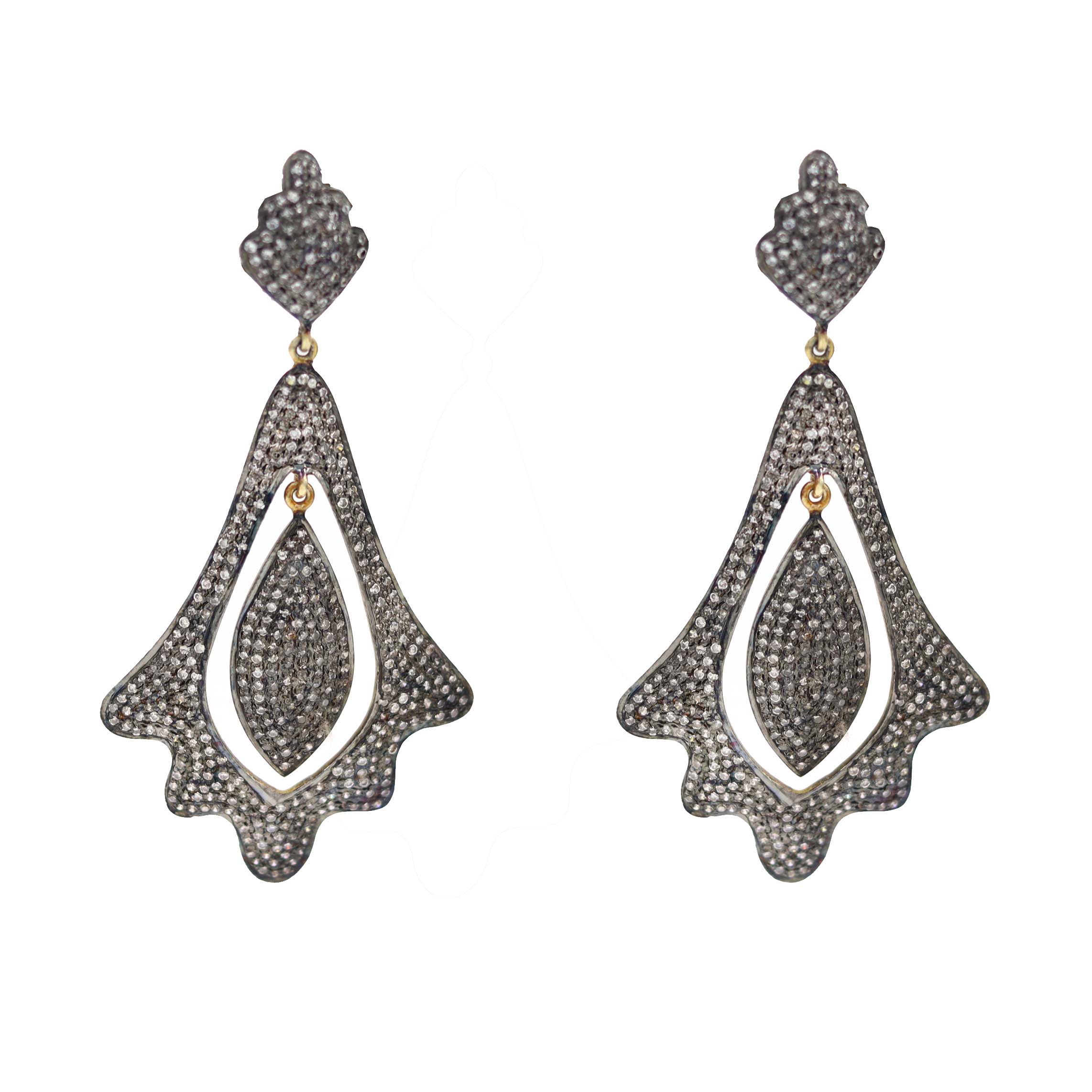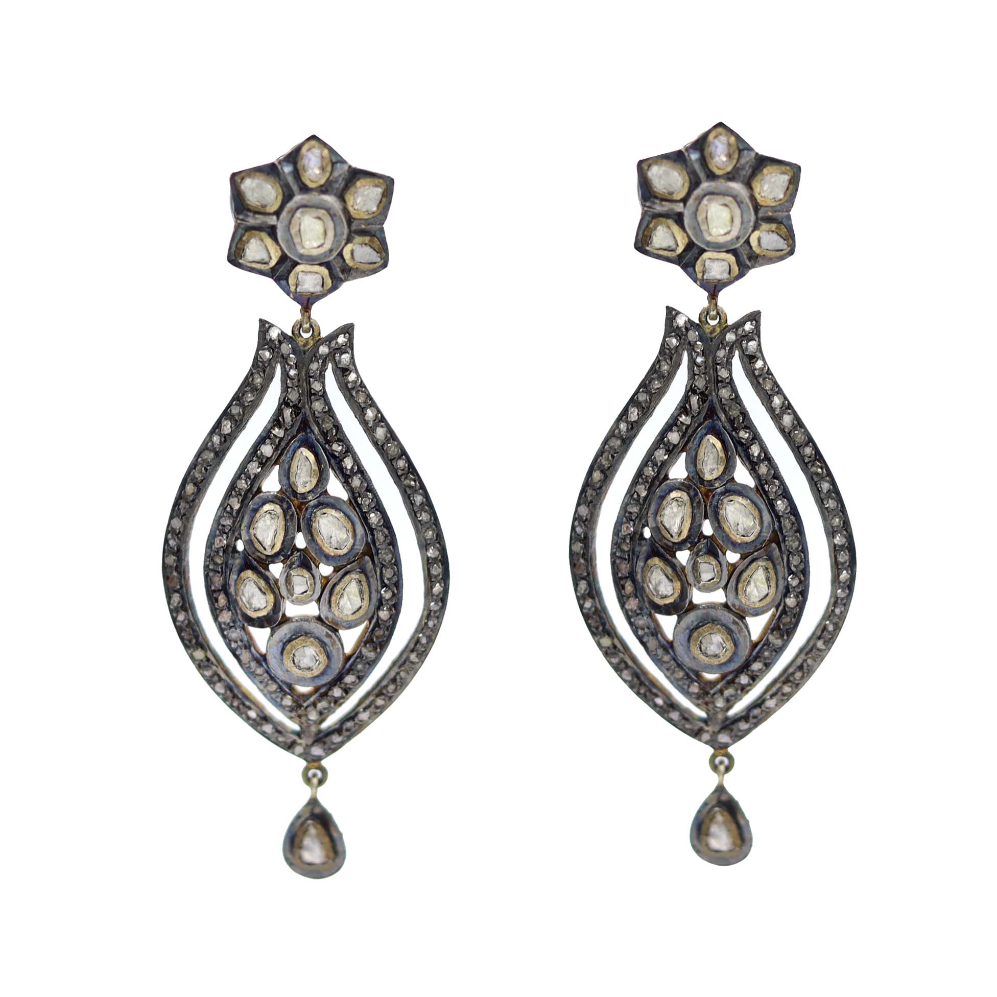 STERLING SILVER NATURAL DIAMOND POLKI SEATED HAND MADE DESIGNER EARRING