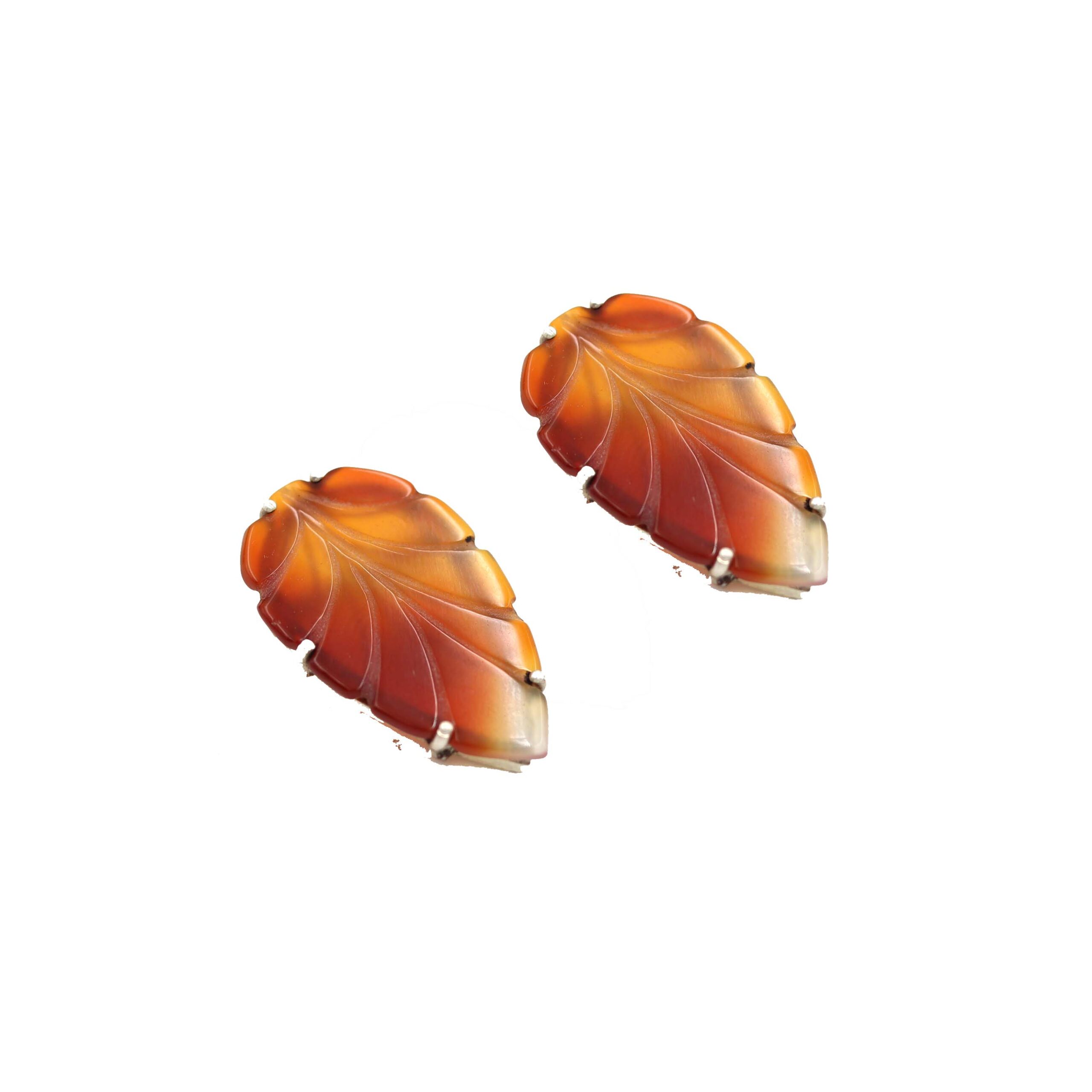 STERLING SILVER CARNELIEN CARVING LEAF HAND MADE DESIGNER EARRING