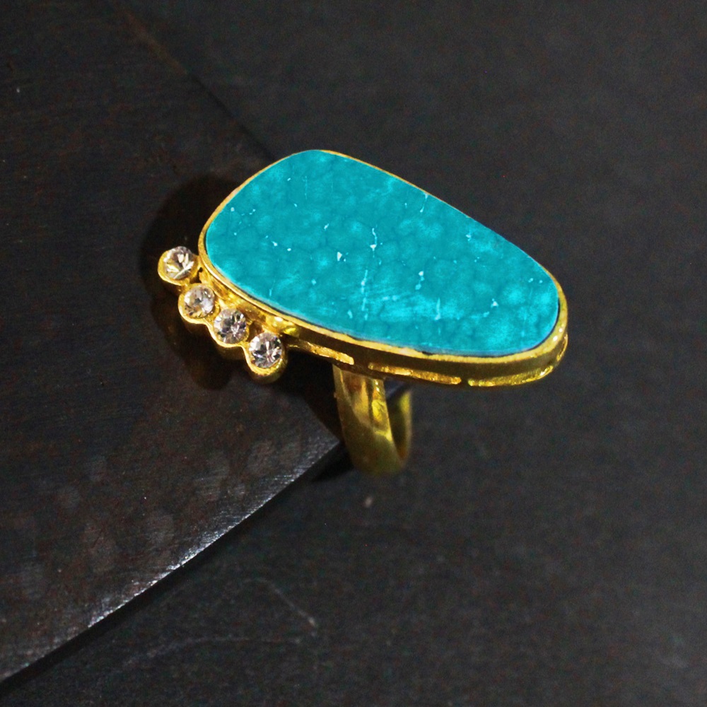 NIKEL FREE BRASS GOLD PLATED CEOATED WITH GEM STONE SETAED RING