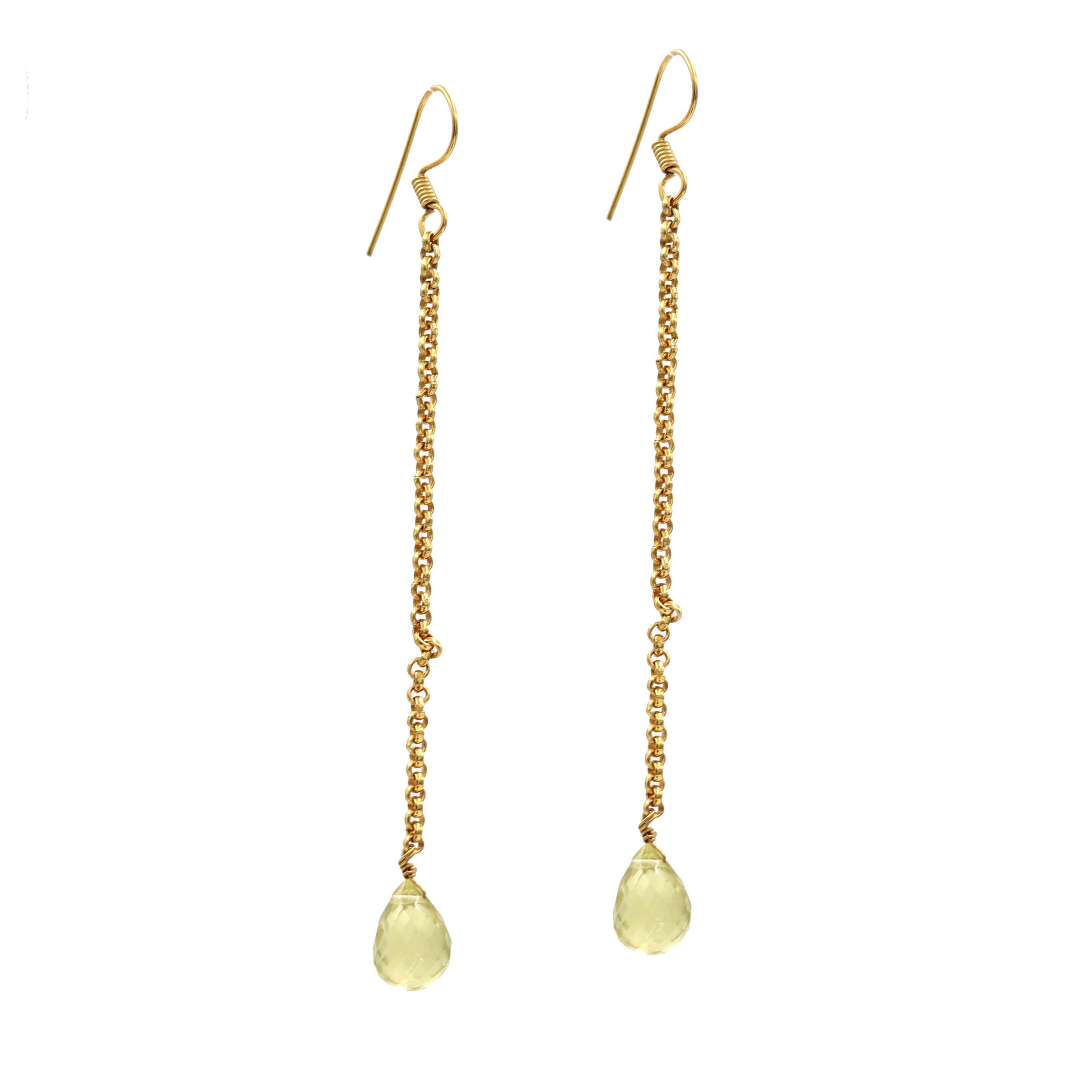 STERLING SILVER GOLD PLATED LEMON TOPAZ BRIOLITE SEATED HAND MADE DESIGNER EARRING