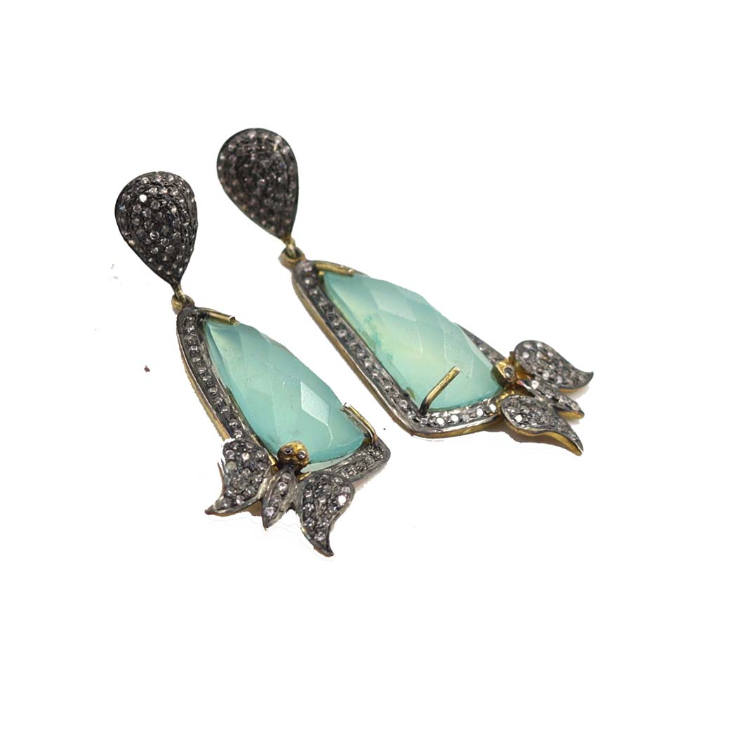 STERLING SILVER AQUA CHELCI WITH C Z SEATED HAND MADE DESIGNER EARRING