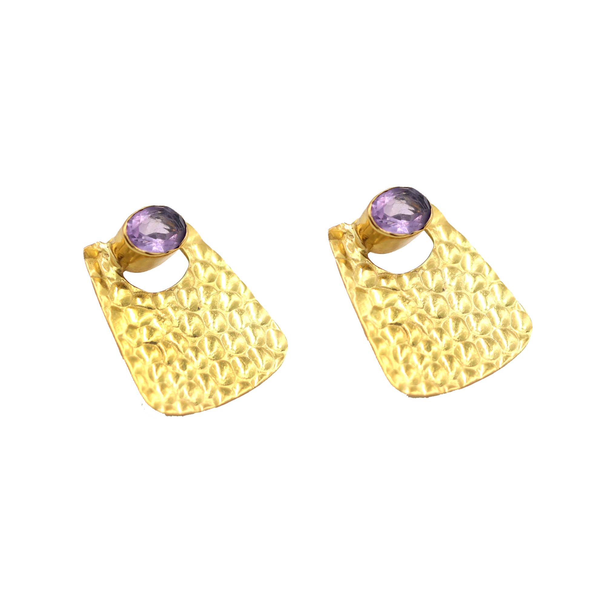 STERLING SILVER AMYTHIST SEATED GOLD PLATED BOAT HAND MADE DESIGNER EARRING