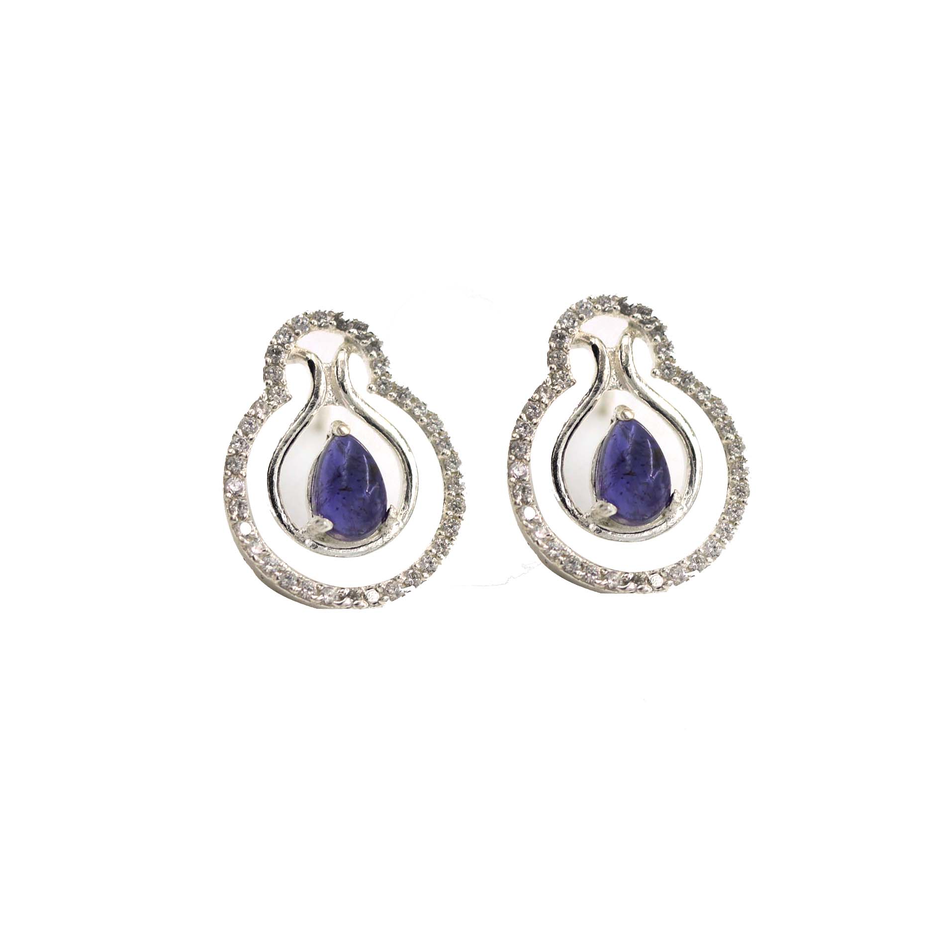 STERLING SILVER IOLITE SEATED HAND MADE DESIGNER EARRING