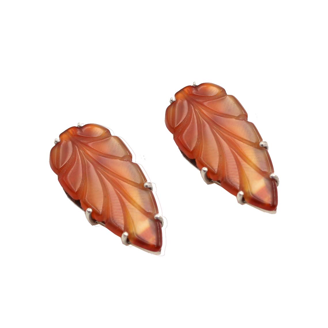 STERLING SILVER CARNELIEN CARVING LEAF SEATED HAND MADE DESIGNER EARRING