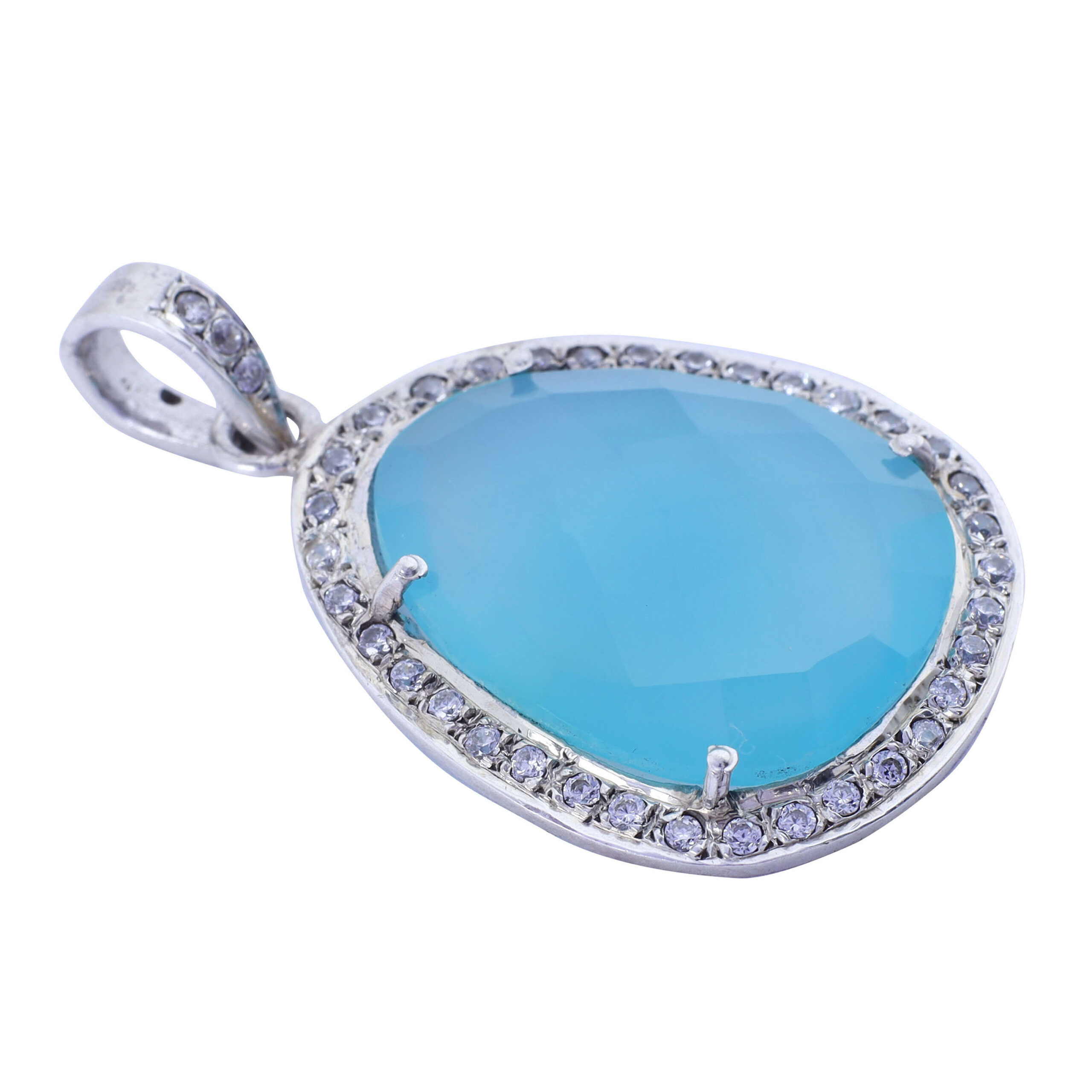 STERLING SILVER SKY ONYX WITH CZ SEATED HAND MADE DESIGNER PENDANT