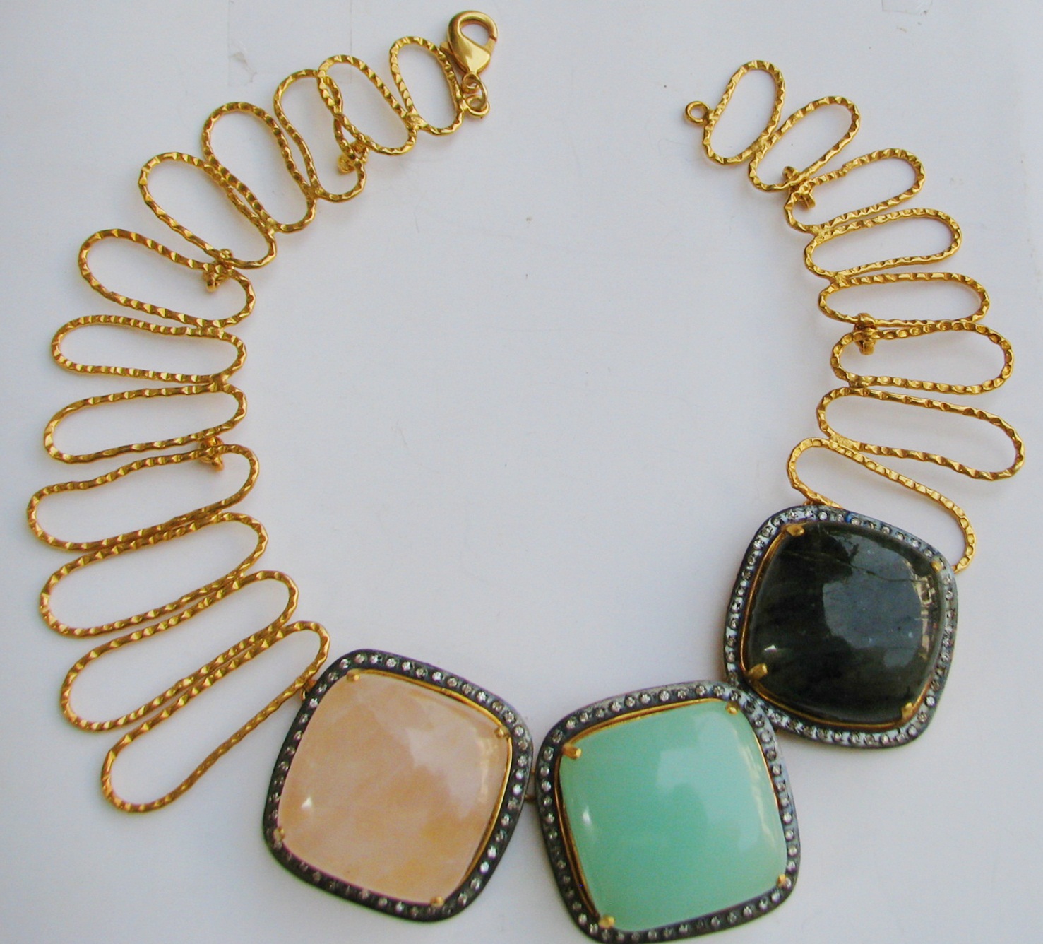 NIKEL FREE BRASS GOLD PLATED ECOATED WITH SEMI PRECIOUS STONE SEATED NECKLAC E