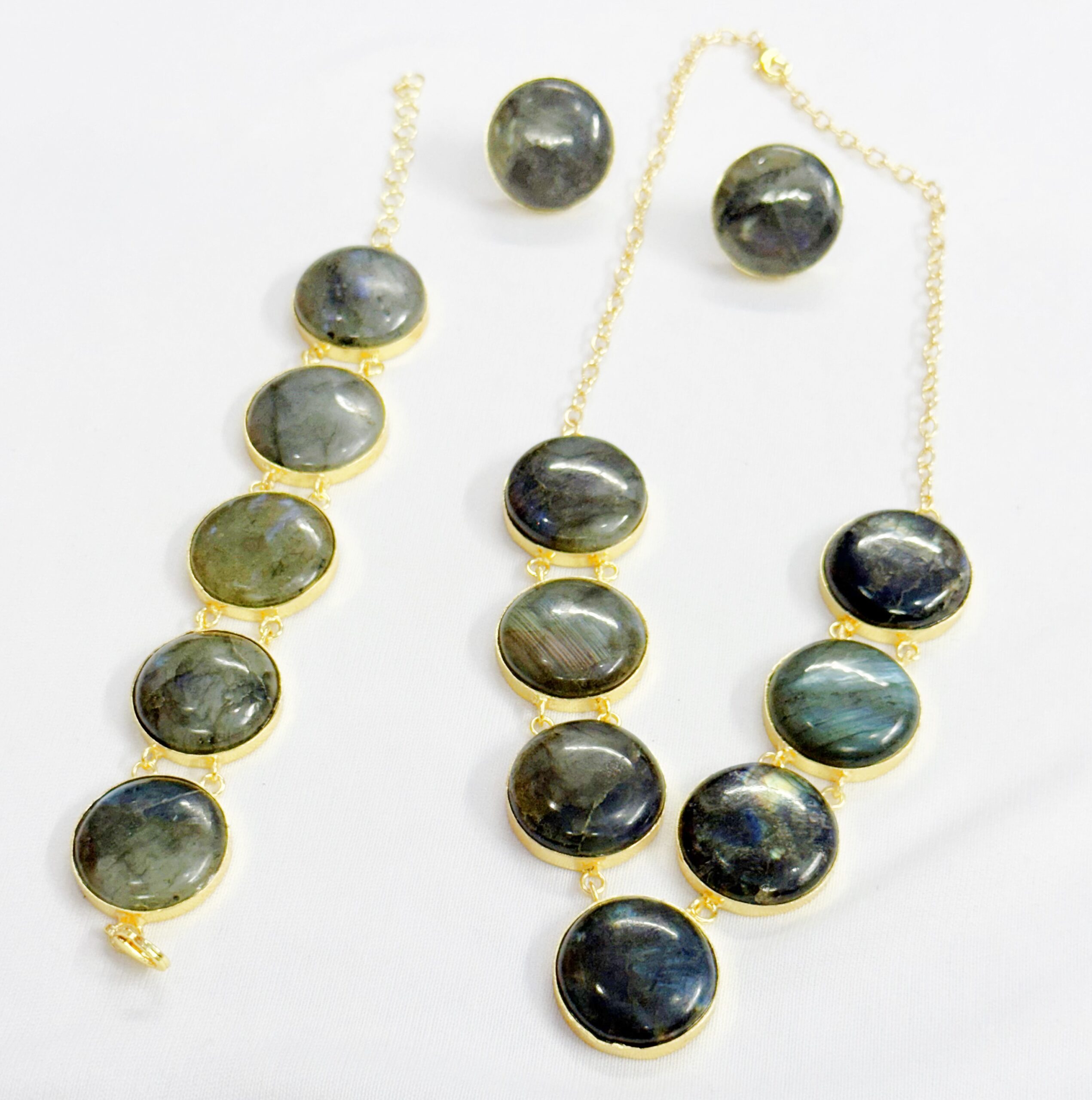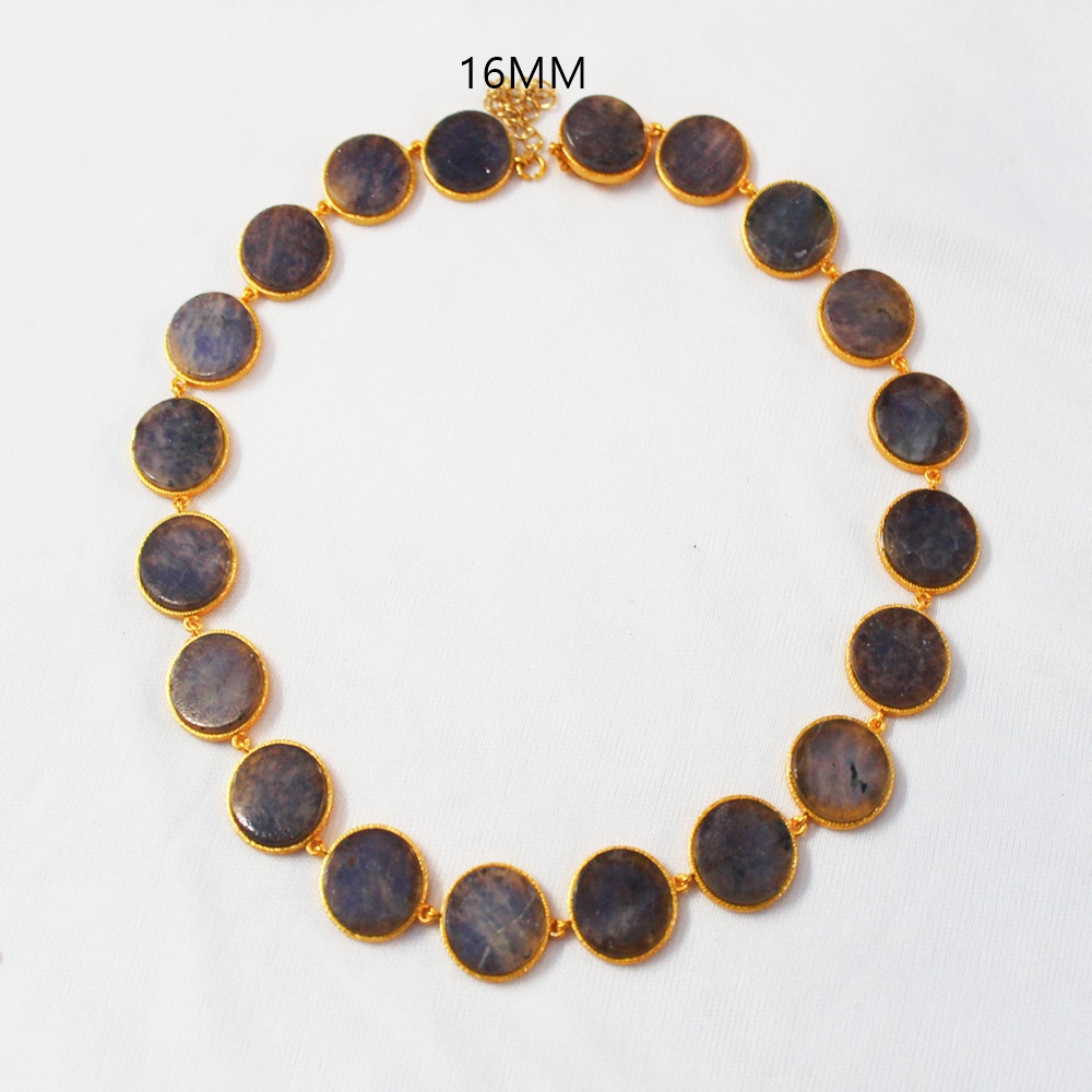 GOLD PLATED BRASS ROUND CERCLE MUTY SIZE HAND CUT POLISHED IOLITE STONE SEATED DESIGNER NECKLACE