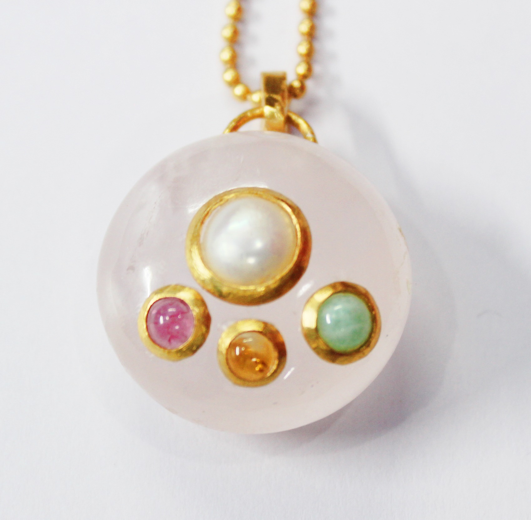 GOLD PLATED BRASS ROUND CERCLE 20 MM HAND CUT POLISHED COCNUT JASPER STONE SEATED DESIGNER NECKLACE