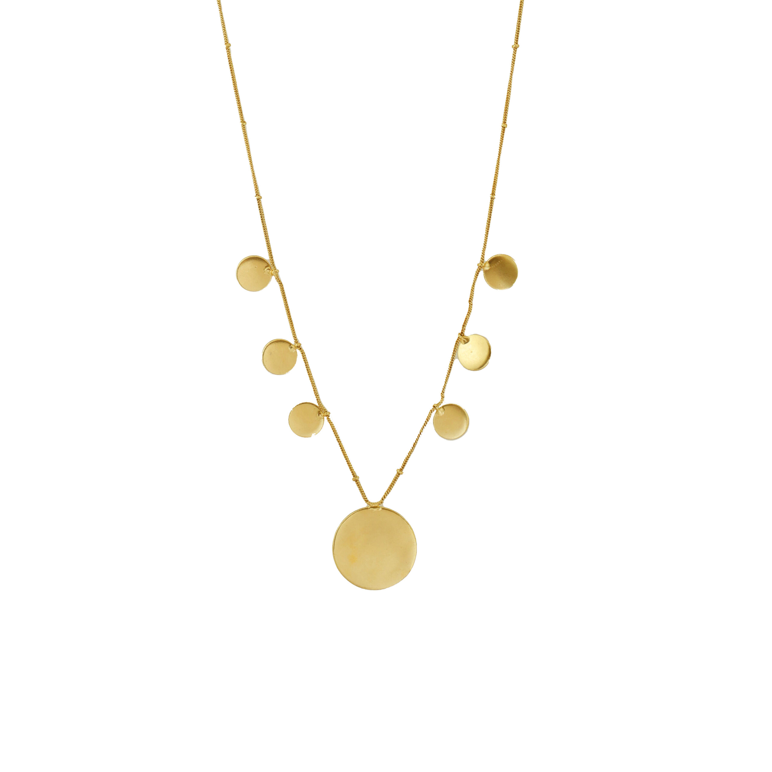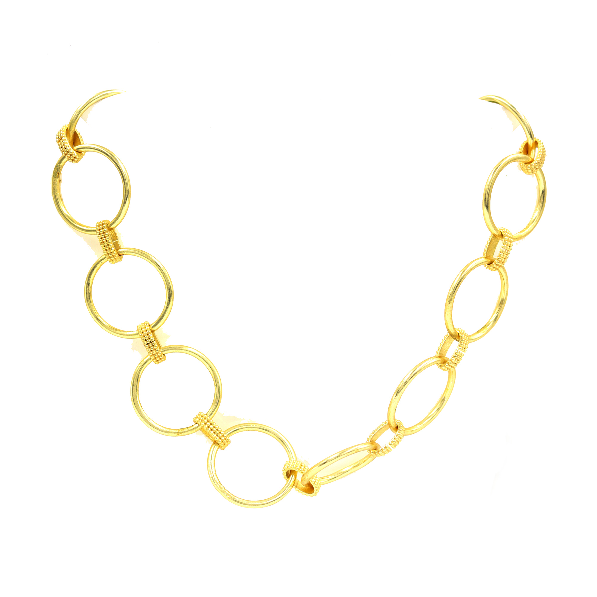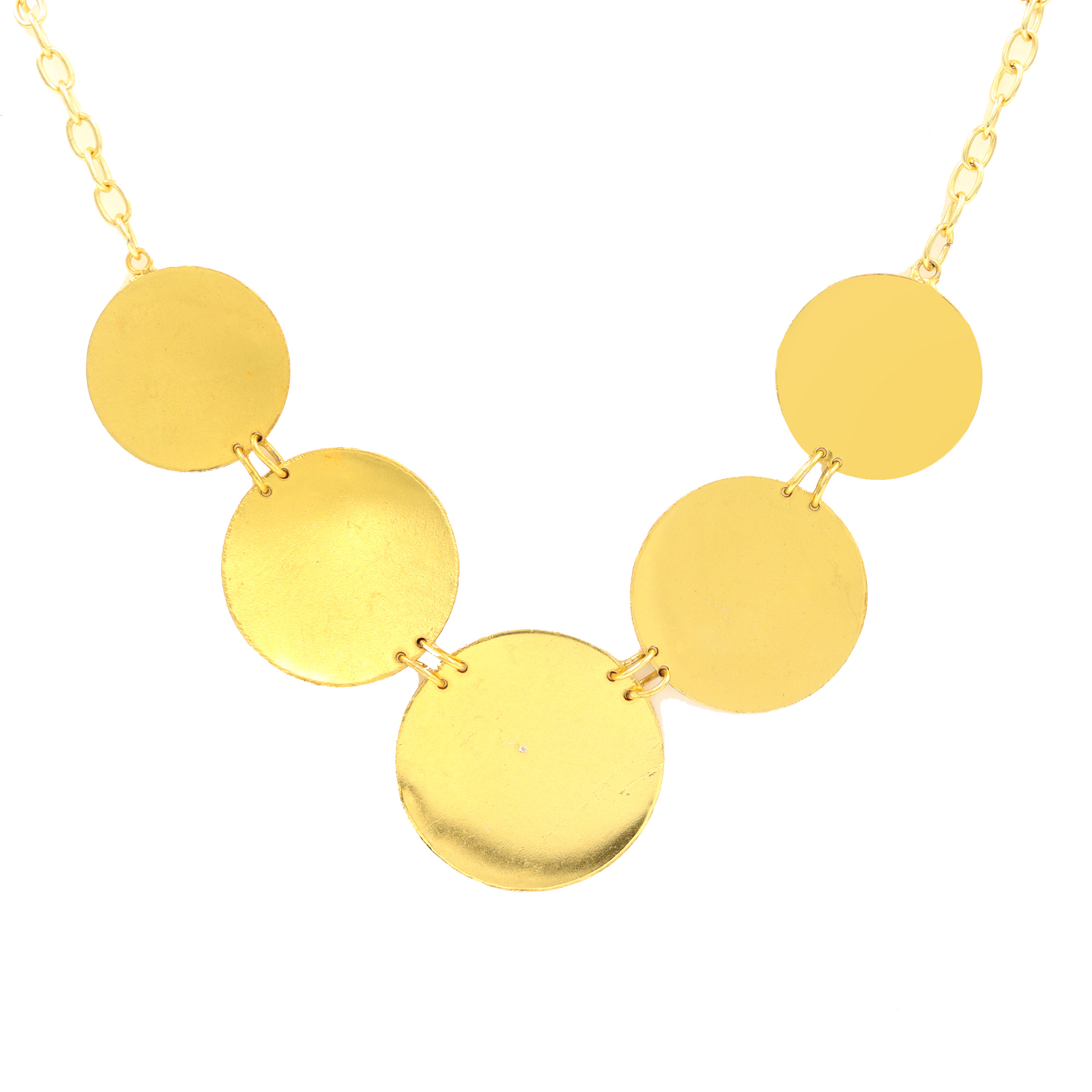 GOLD PLATED BRASS ROUND CERCLE 24MM DESIGNER NECKLACE WITH OUT SIDE HAMMAER TEXTURE