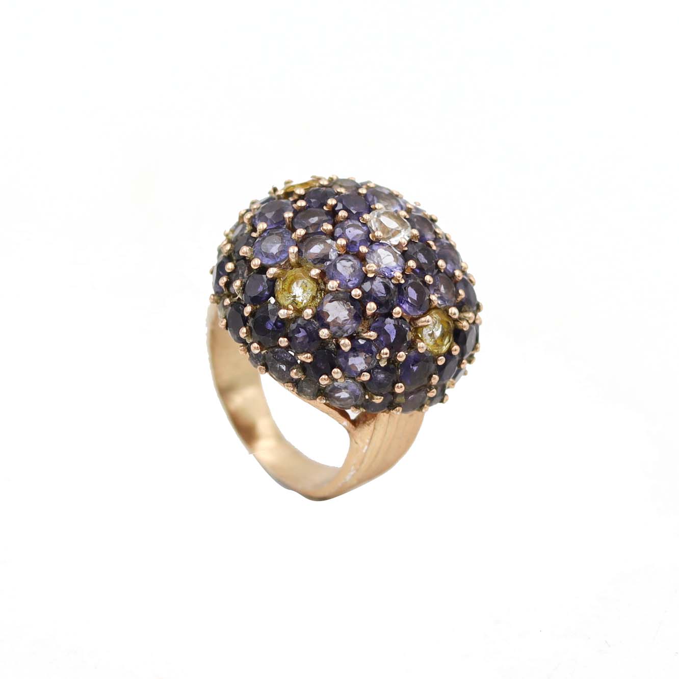 STERLING SILVER WITH GOLD PLATED IOLITE AND CZ SEATED DESIGNER RING