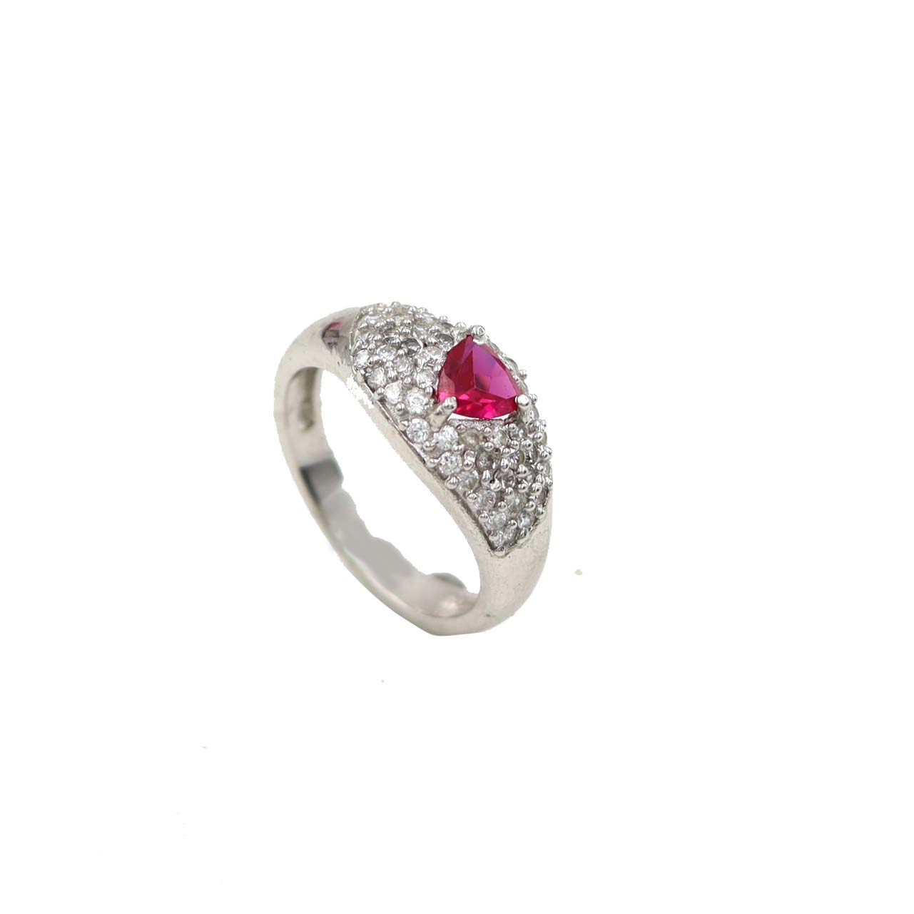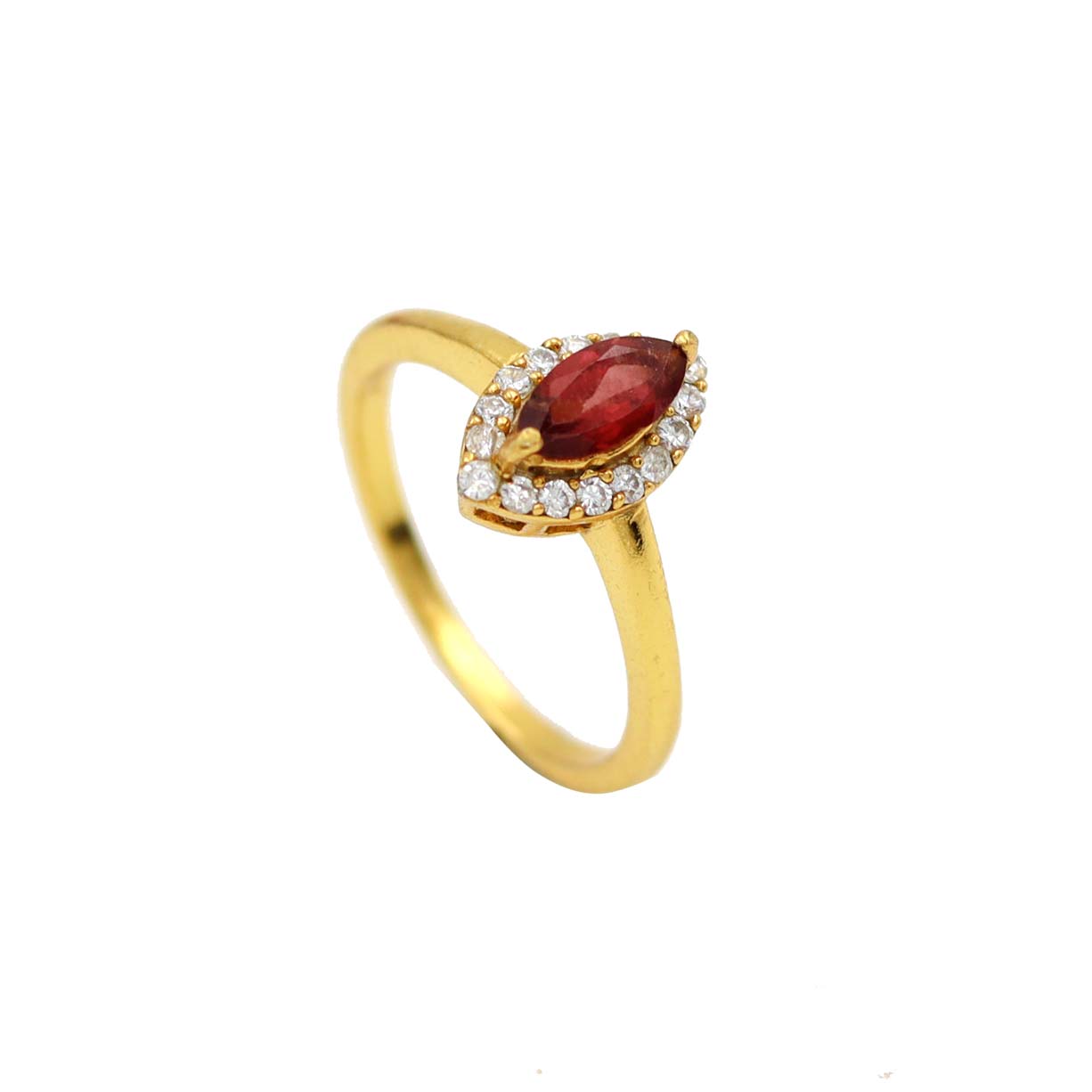 STERLING SILVER WITH GOLD PLATED GARNET AND CZ SEATED DESIGNER RING