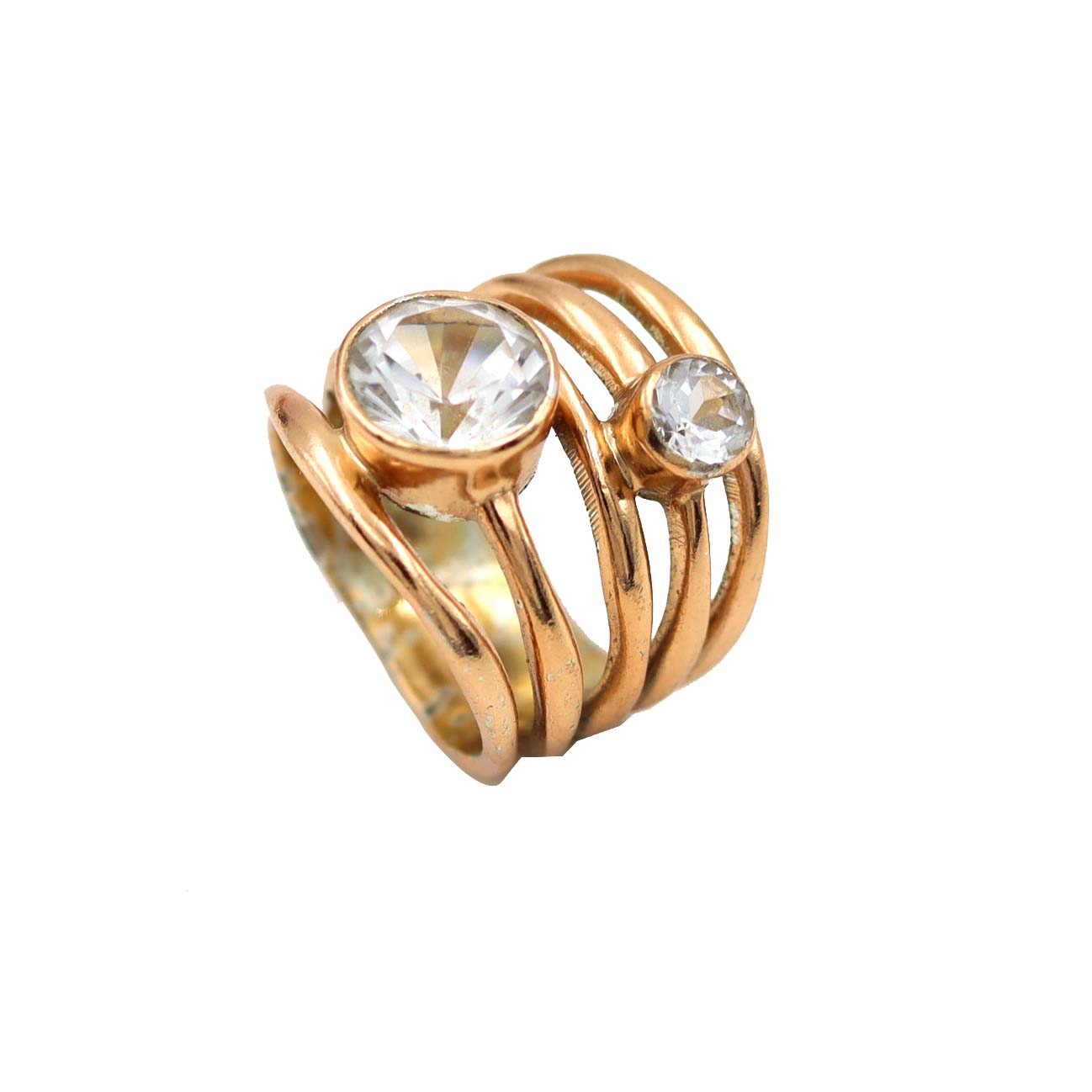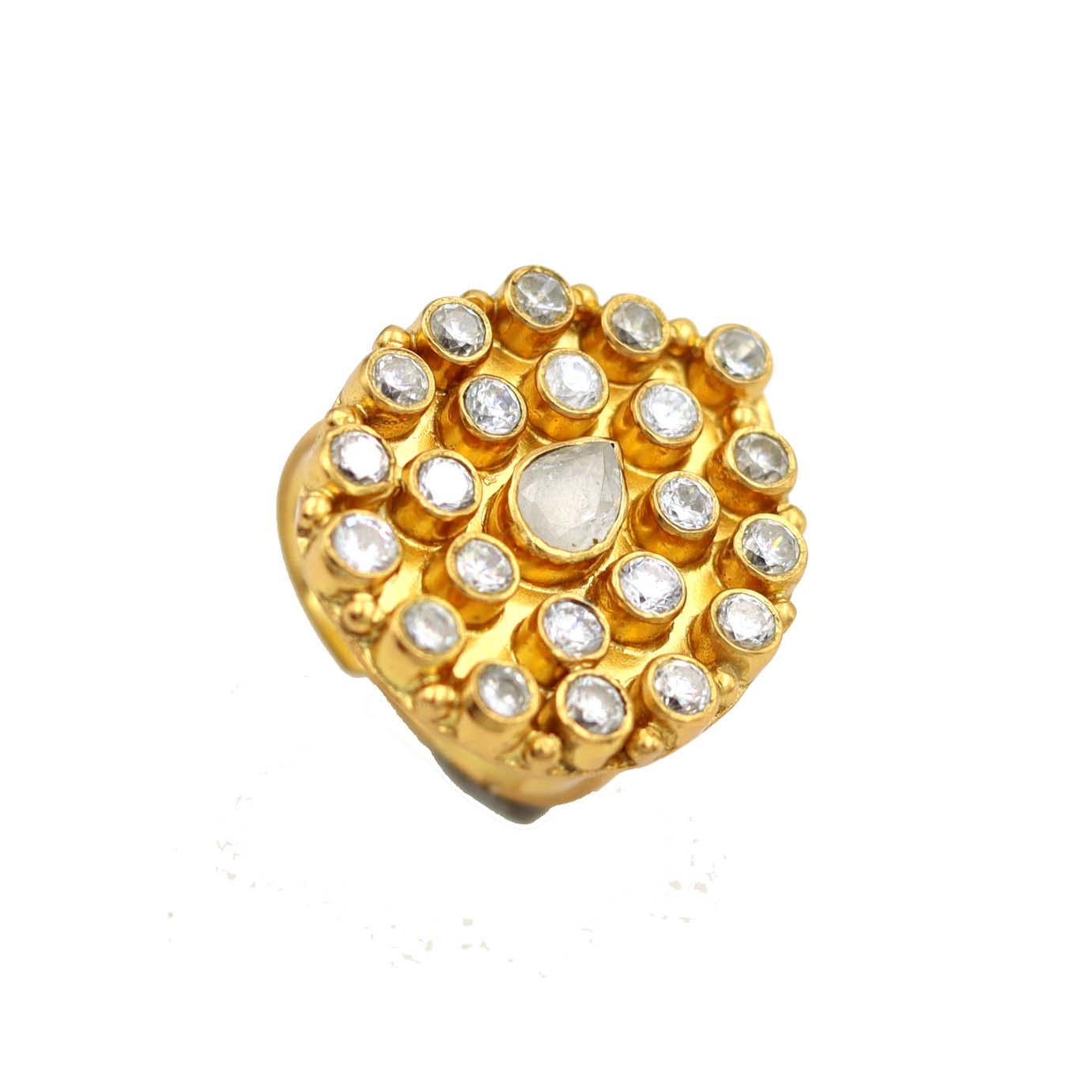 STERLING SILVER WITH GOLD PLATED MULTY LAYER WHITE TOPAZ SEATED DESIGNER RING