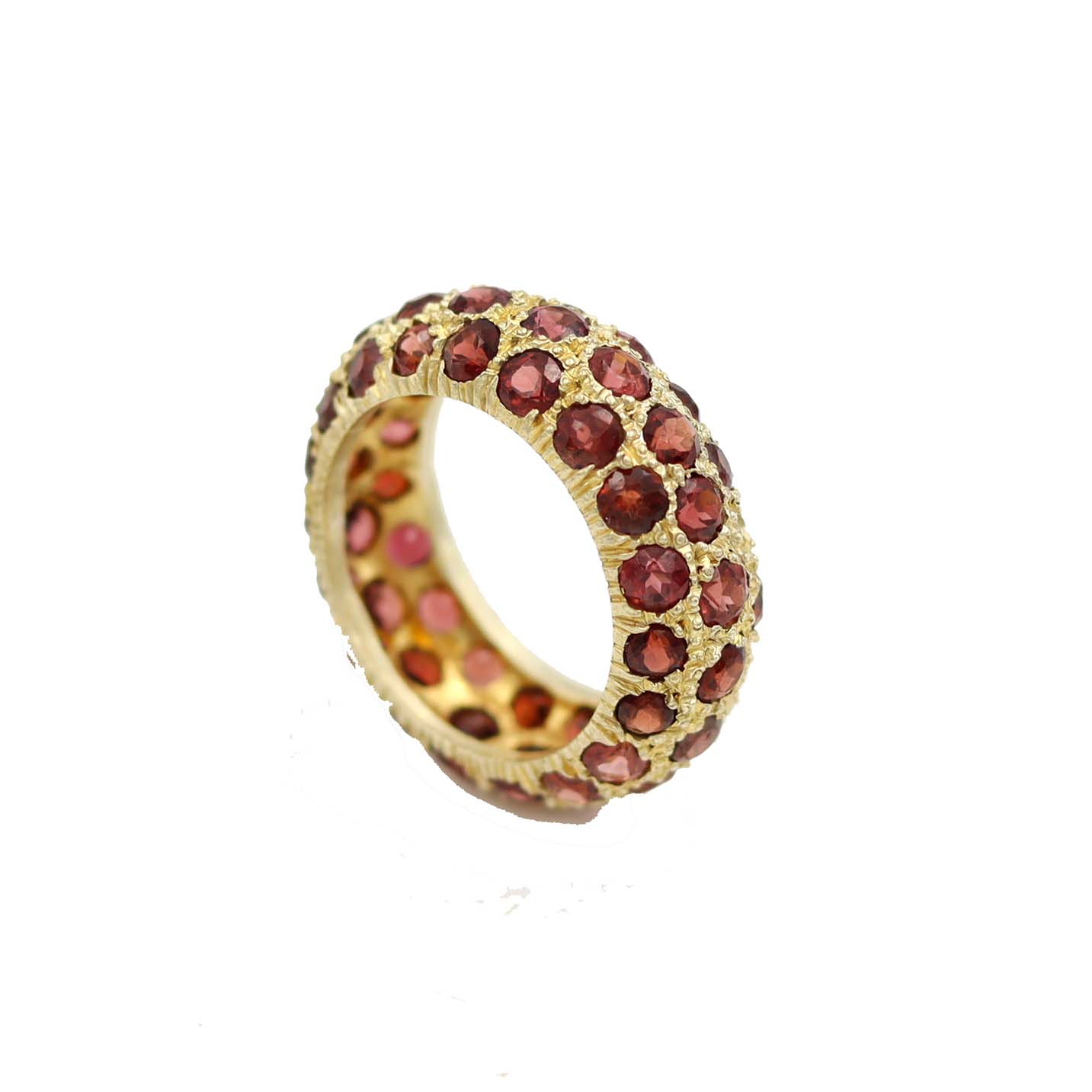 STERLING SILVER WITH GOLD PLATED GARNET SEATED DESIGNER RING