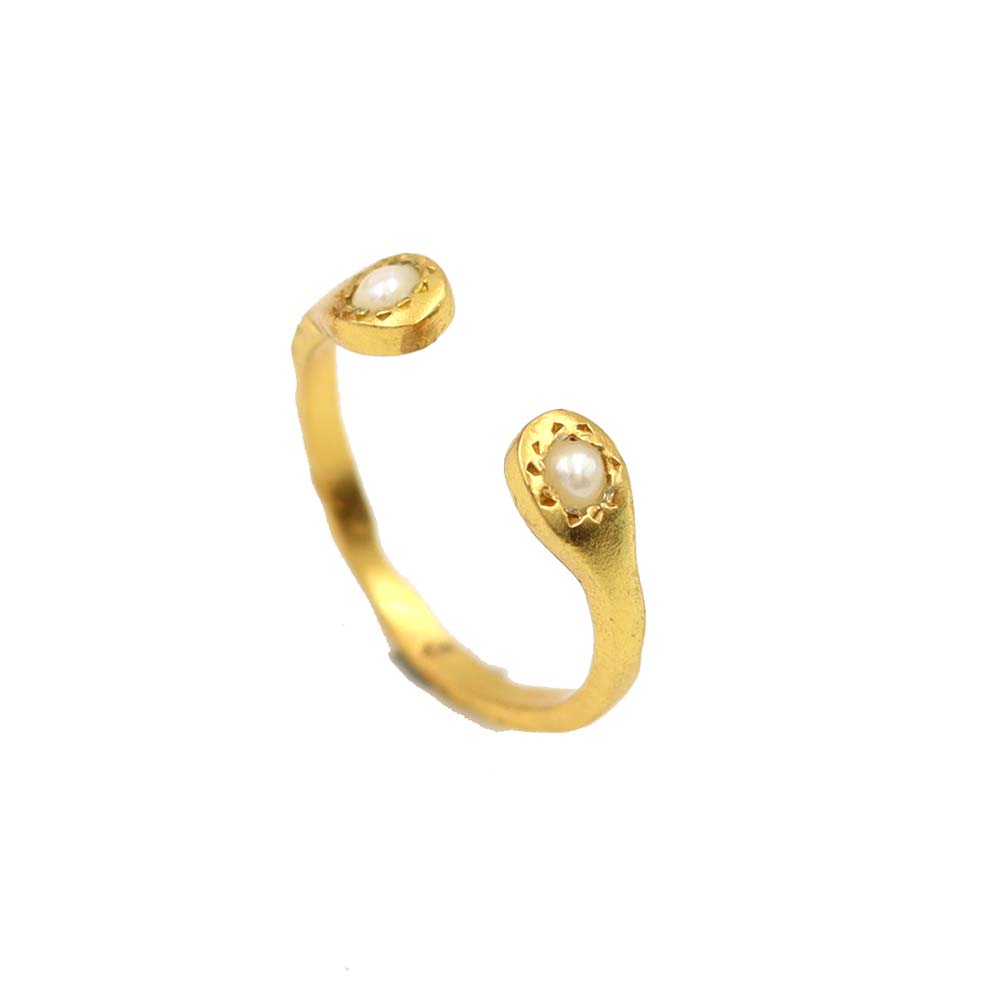 STERLING SILVER WITH GOLD PLATED PEARL SEATED DESIGNER RING