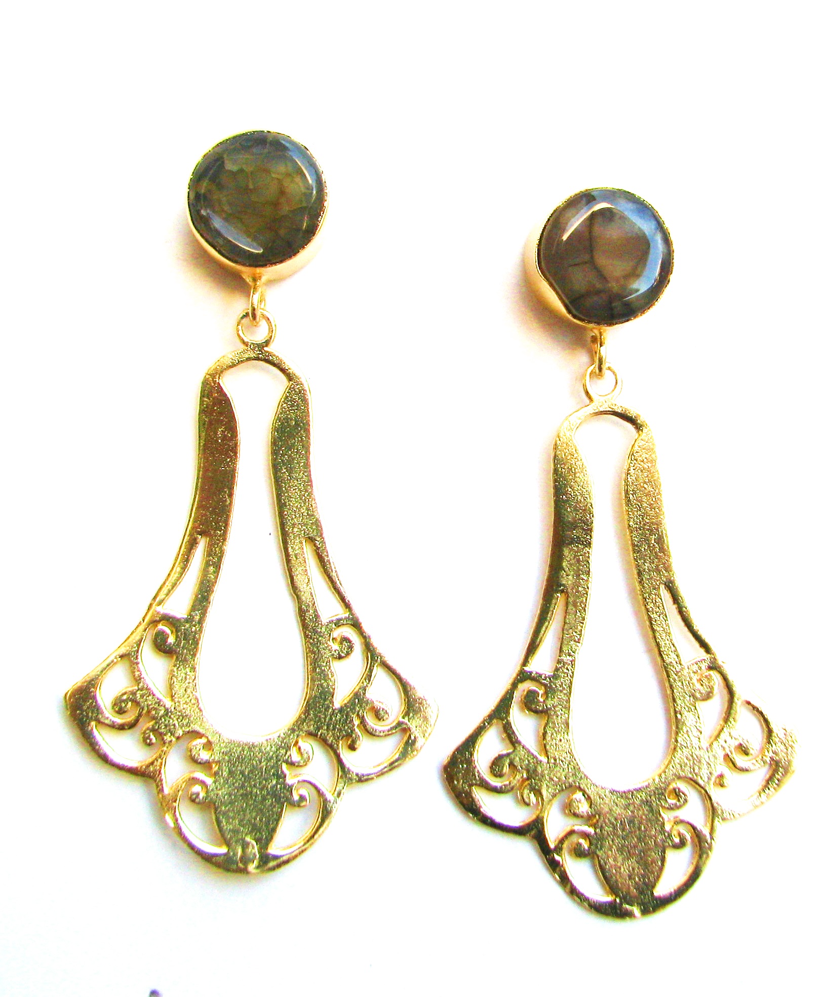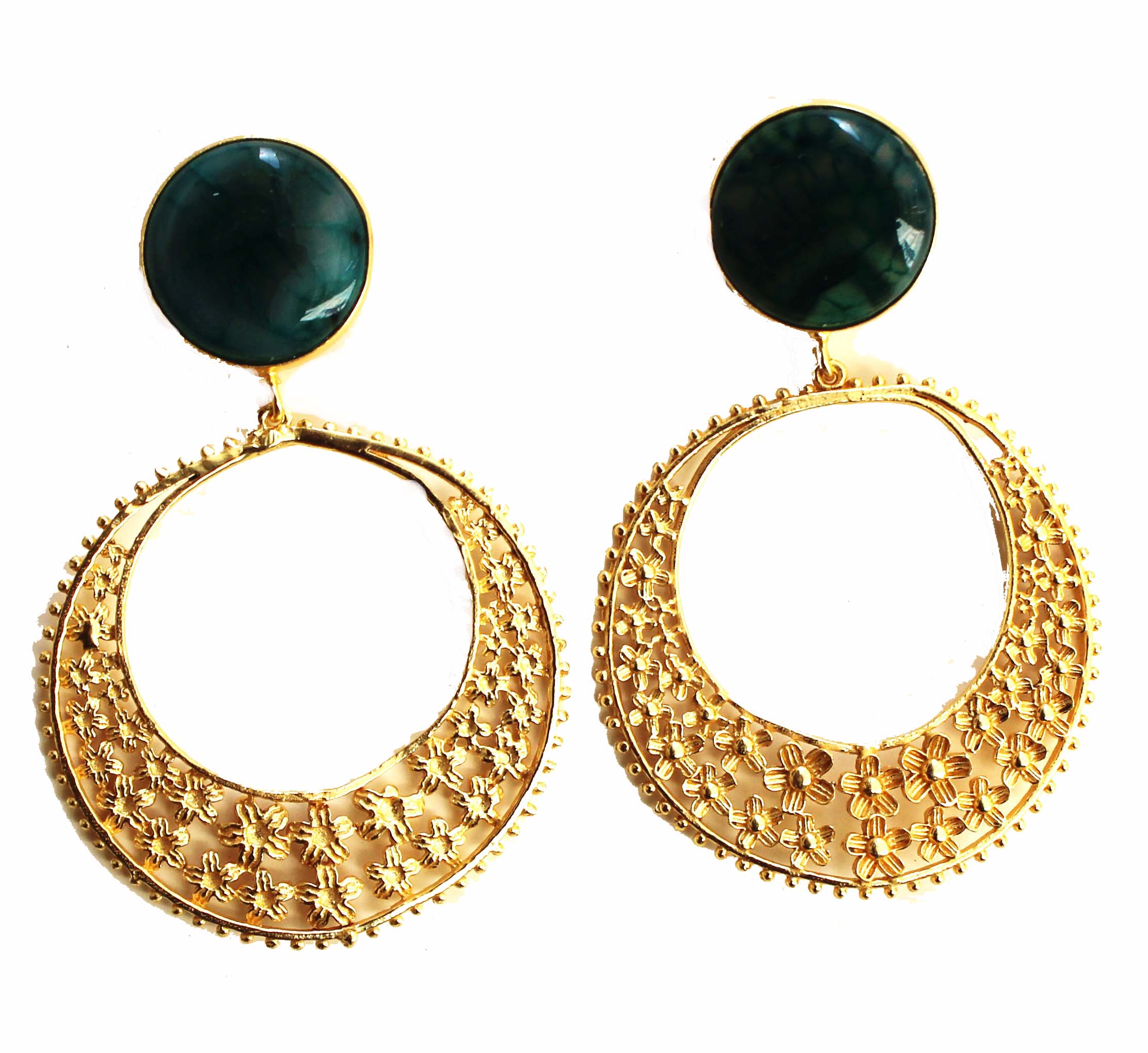 NIKEL FREE BRASS GOLD PLATED CEOATED WITH GEM STONE SETAED EARRING