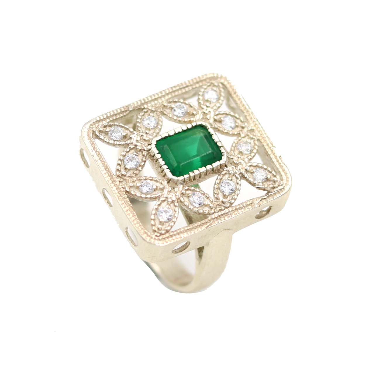 STERLING SILVER WITH GOLD PLATED GREEN ONYS AND C Z SEATED DESIGNER RING