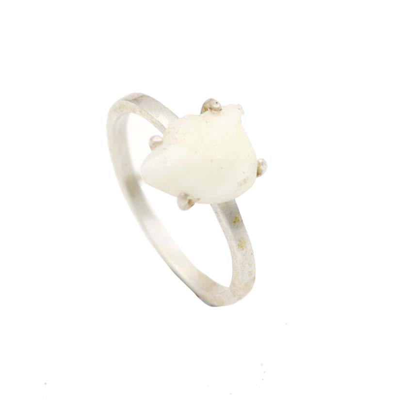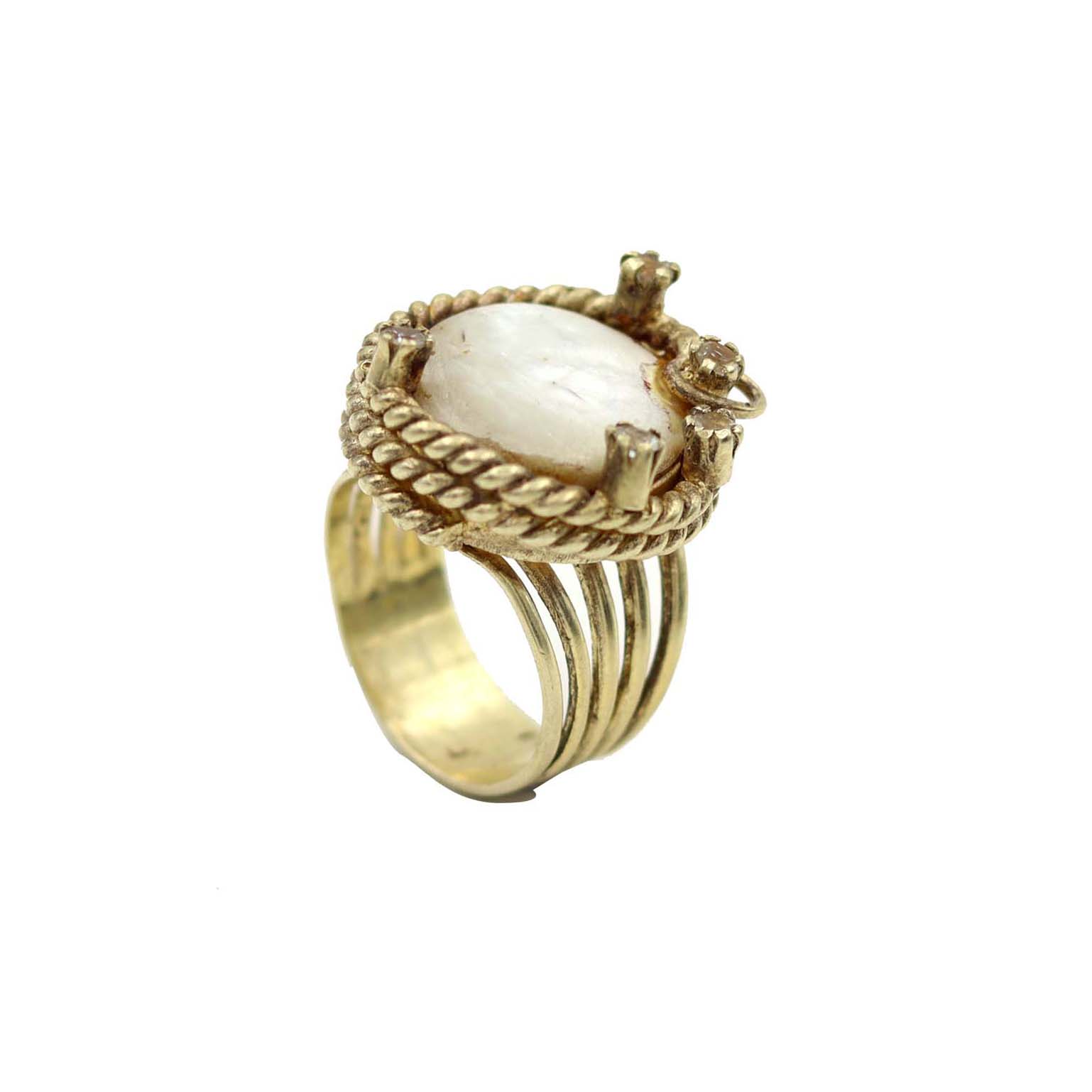 STERLING SILVER WITH GOLD PLATED MOP AND WHITE TOPAZ SEATED DESIGNER RING