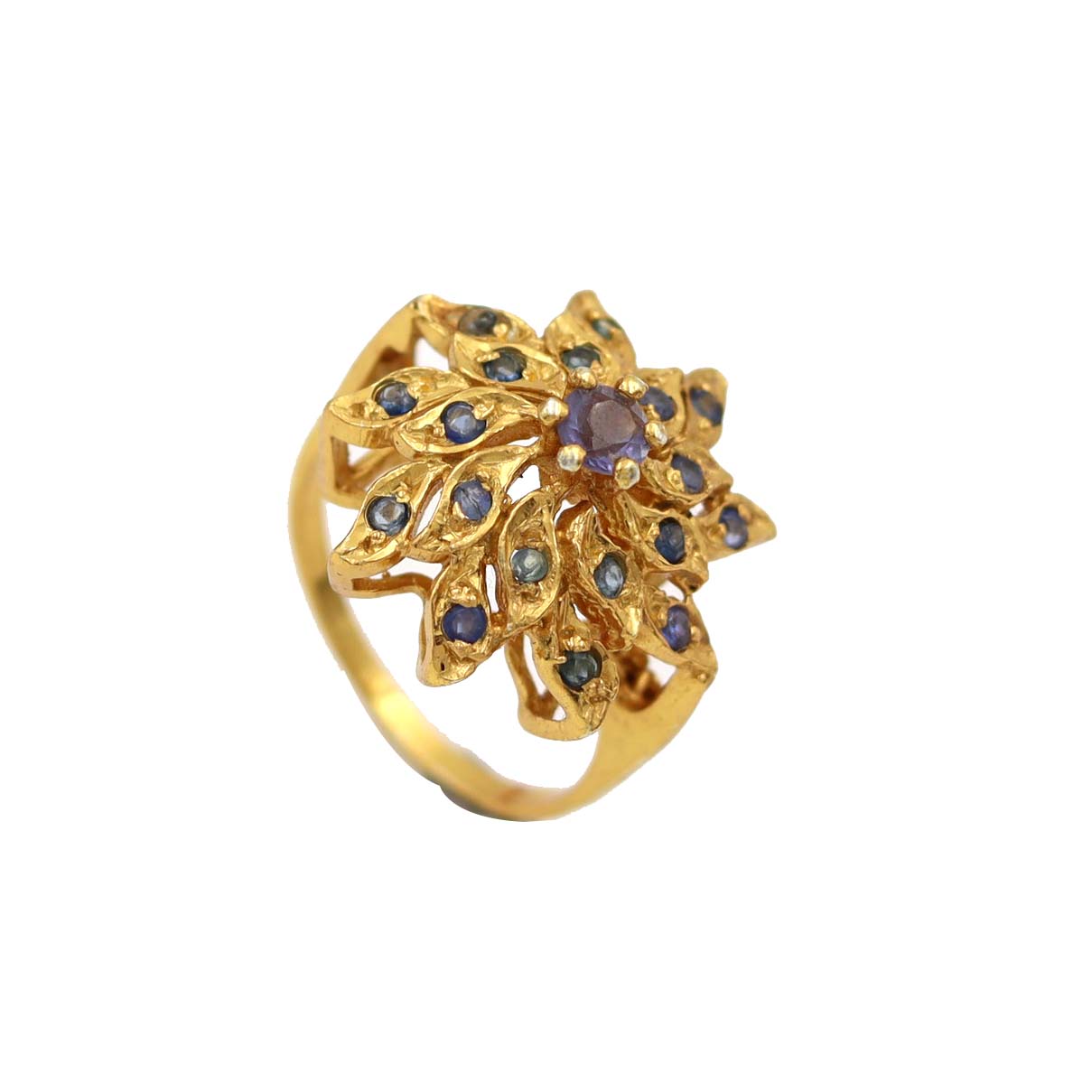 STERLING SILVER WITH GOLD PLATED BLUE SHAPPIRE SEATED DESIGNER RING