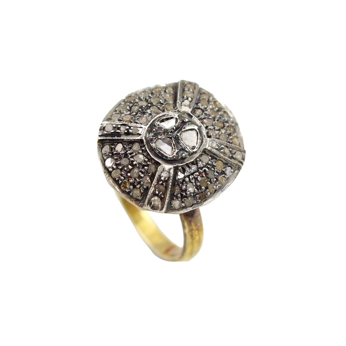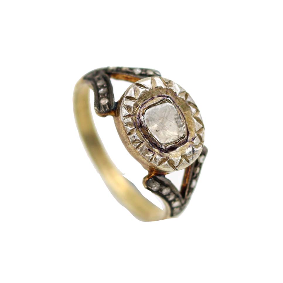 STERLING SILVER WITH GOLD PLATED NATURAL DIAMOND POLKI NAD SINGLE CUT SEATED DESIGNER RING